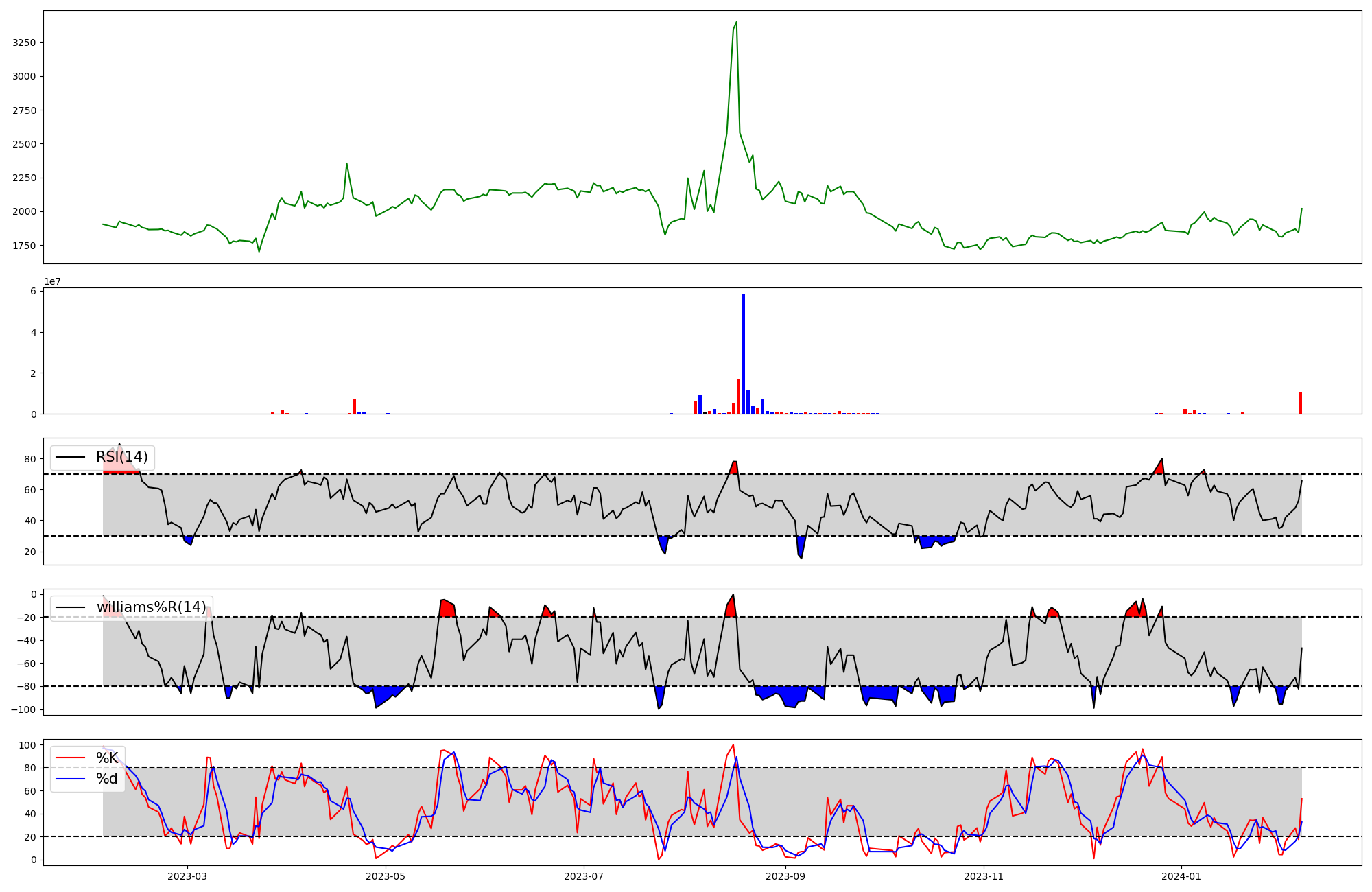 | RSI | Williams %R | stochastic(%K) | |