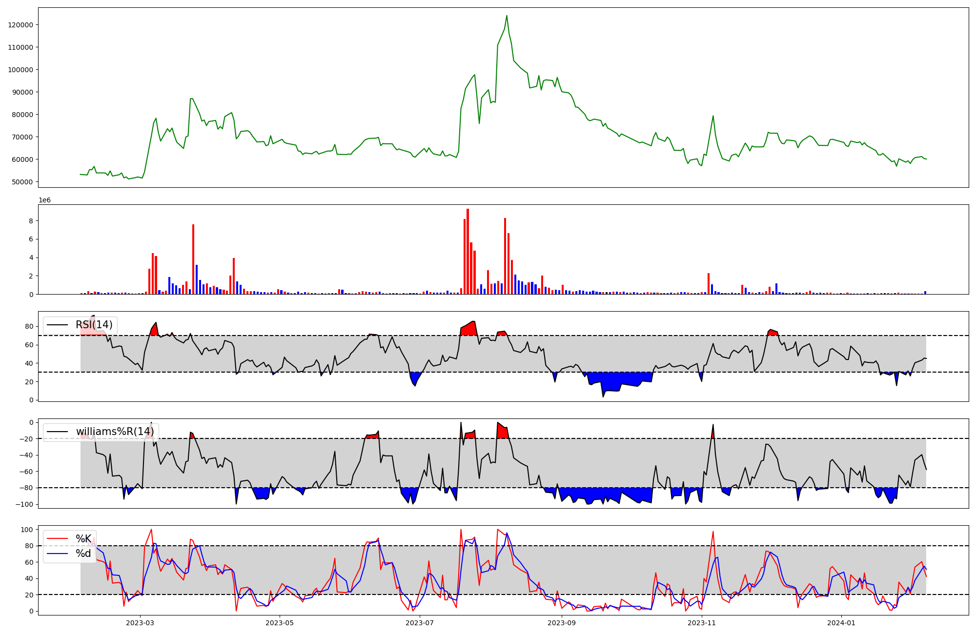 | RSI | Williams %R | stochastic(%K) | |