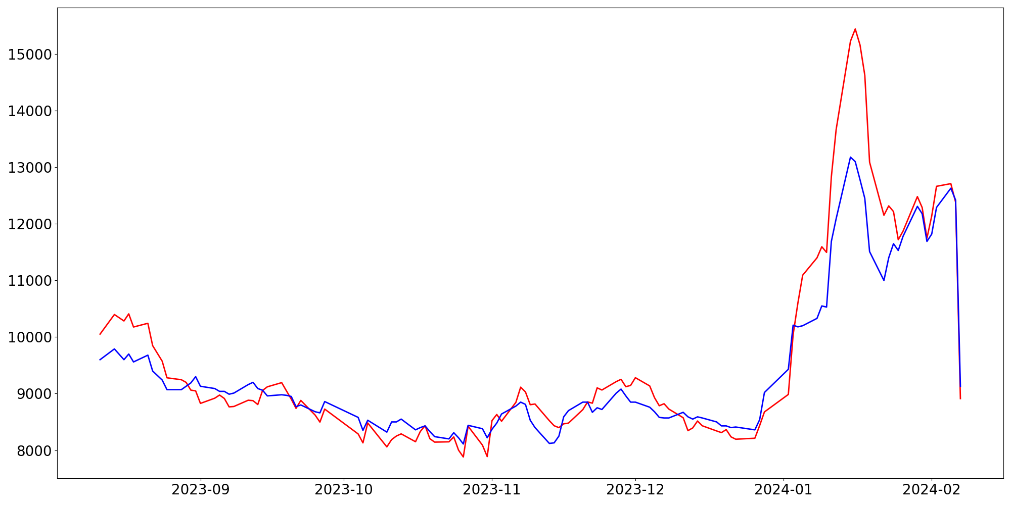 [ - : 실제값(종가) / - : 예측값(종가) ]