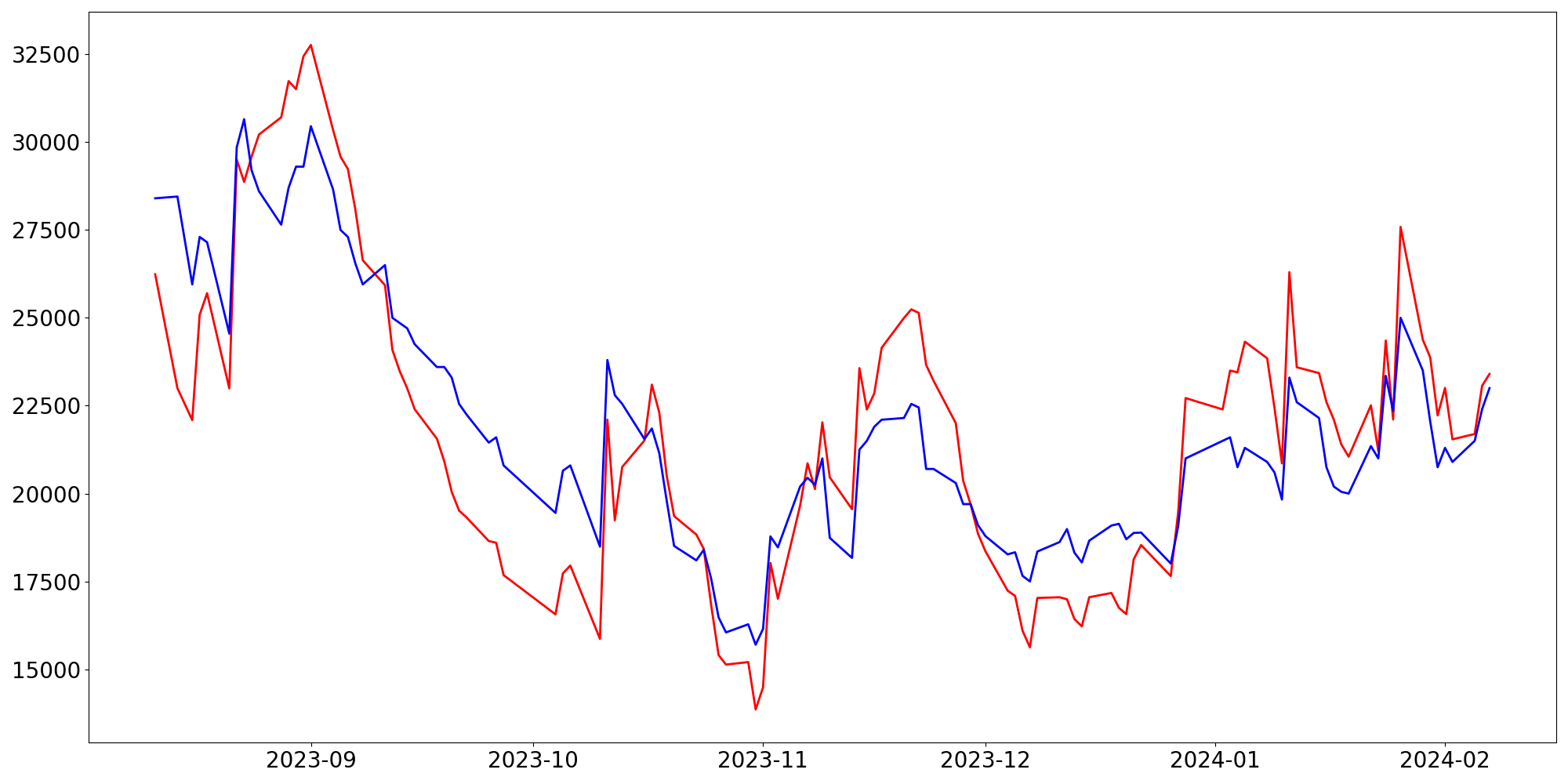 [ - : 실제값(종가) / - : 예측값(종가) ]