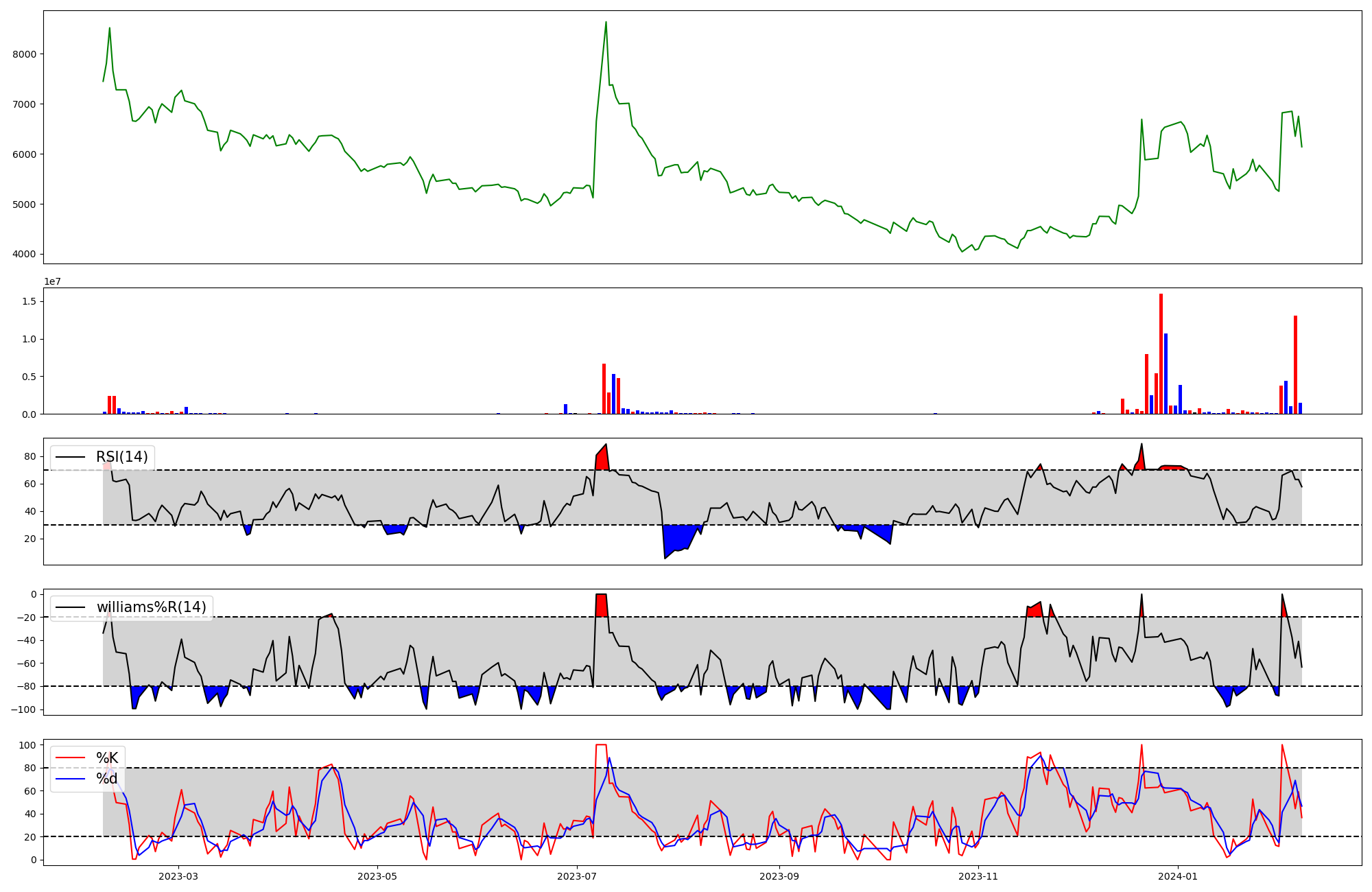 | RSI | Williams %R | stochastic(%K) | |