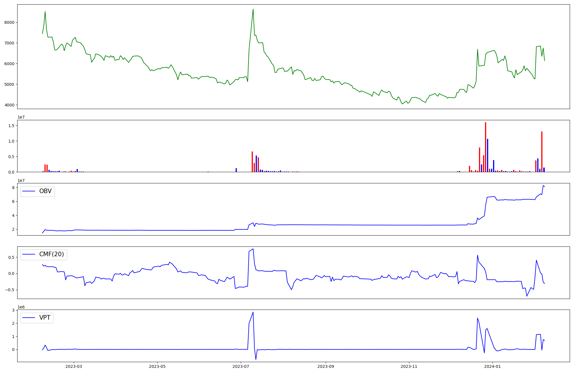 | OBV | CMF | VPT | |
