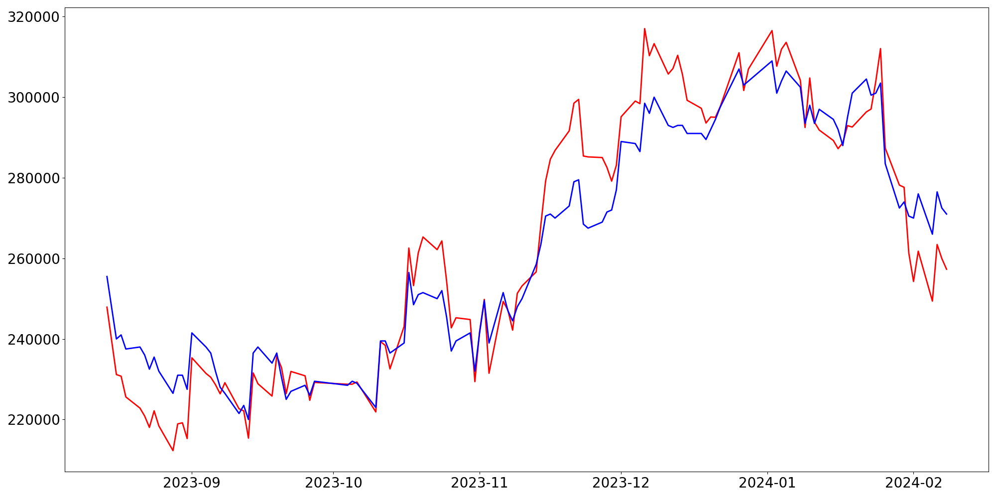 [ - : 실제값(종가) / - : 예측값(종가) ]