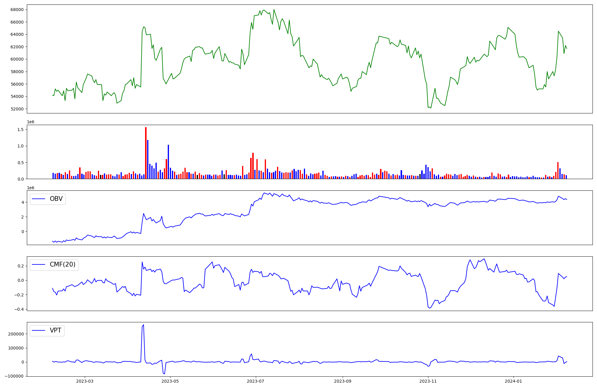 | OBV | CMF | VPT | |