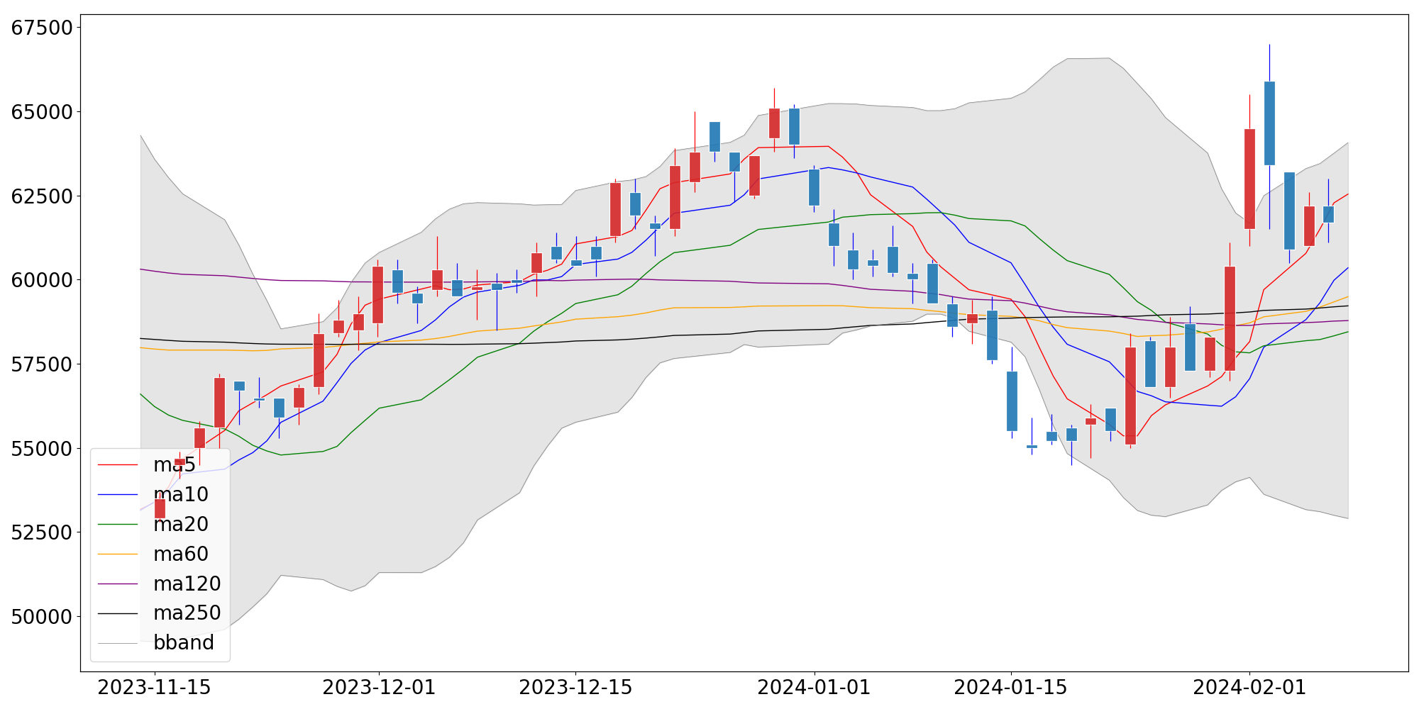 | 단순이동평균 | 62,540.00 | 60,350.00 | 58,450.00 |