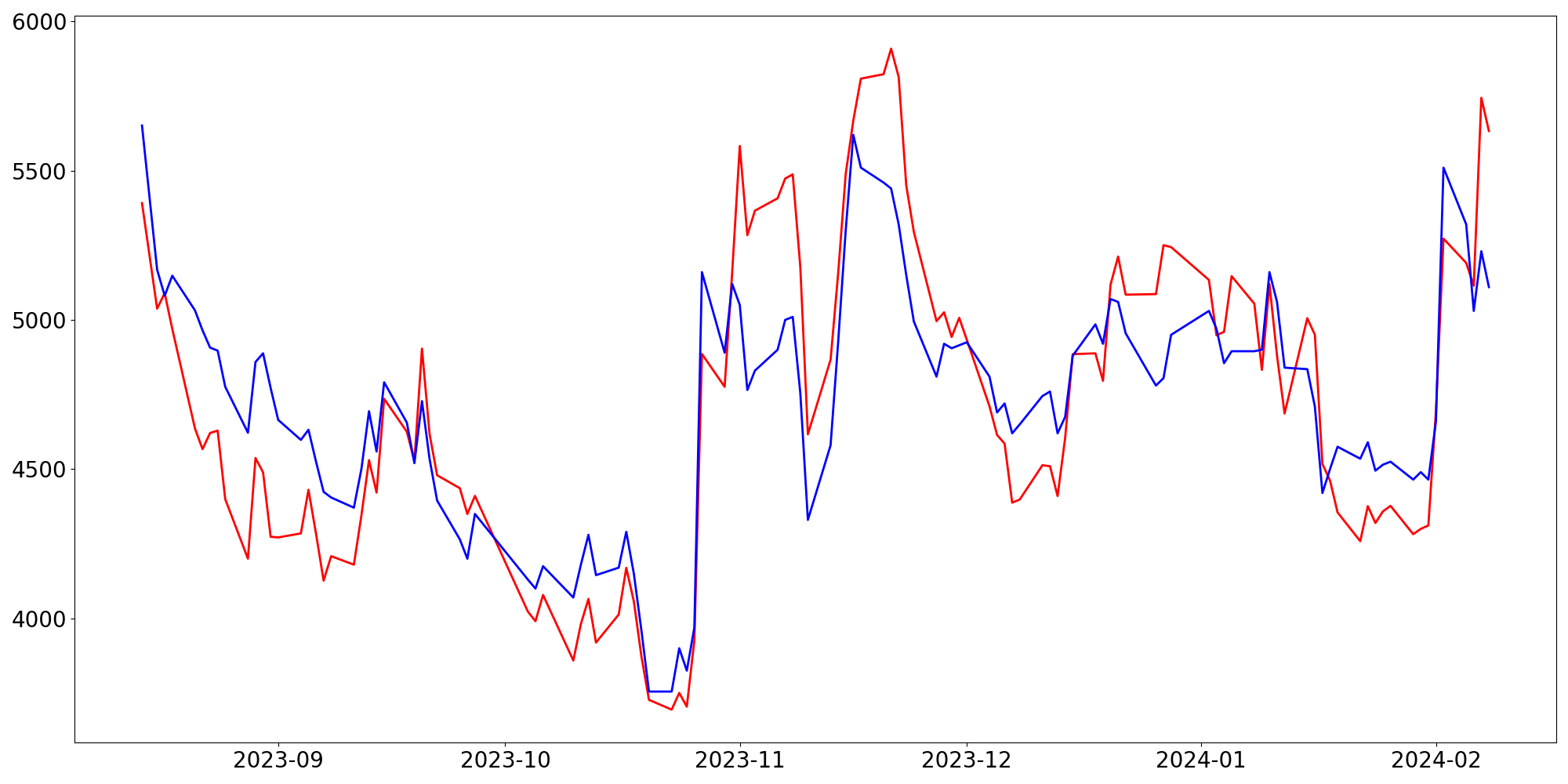 [ - : 실제값(종가) / - : 예측값(종가) ]