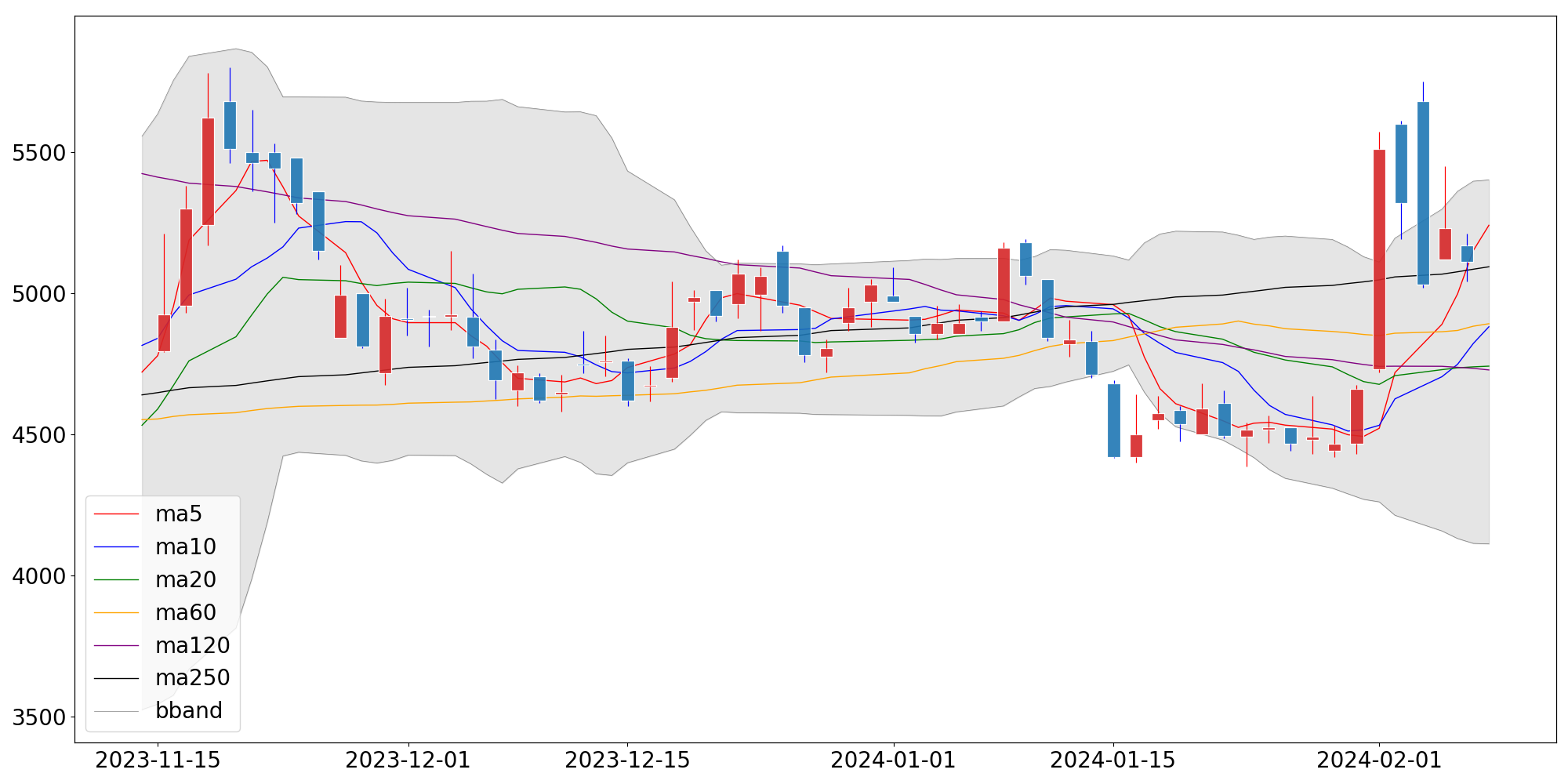 □ 중기 : 현재 종가가 중기(60일) 이동평균값(4,891원)을 상회 하여 중기적 추세 상승 중