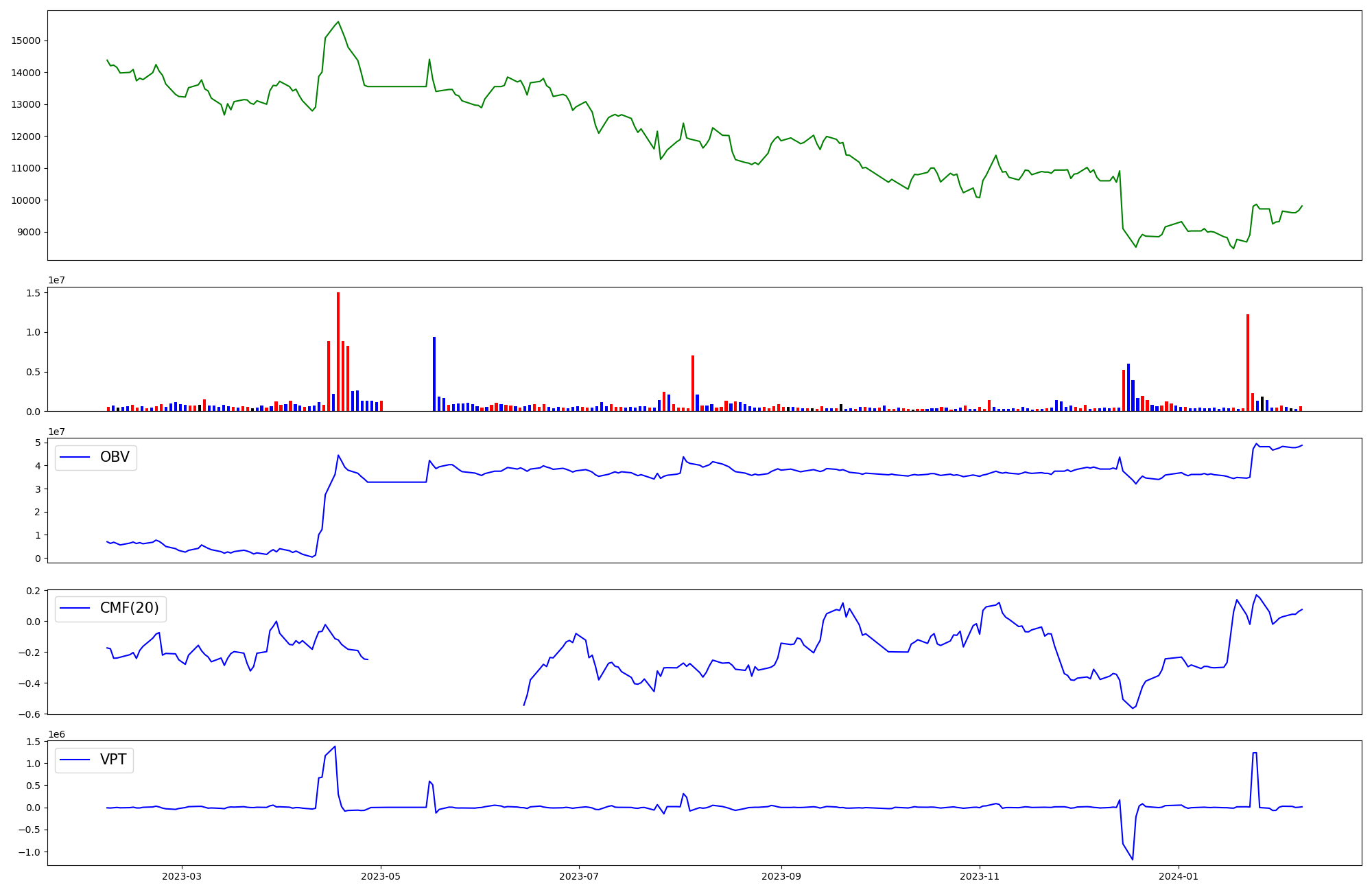 | OBV | CMF | VPT | |