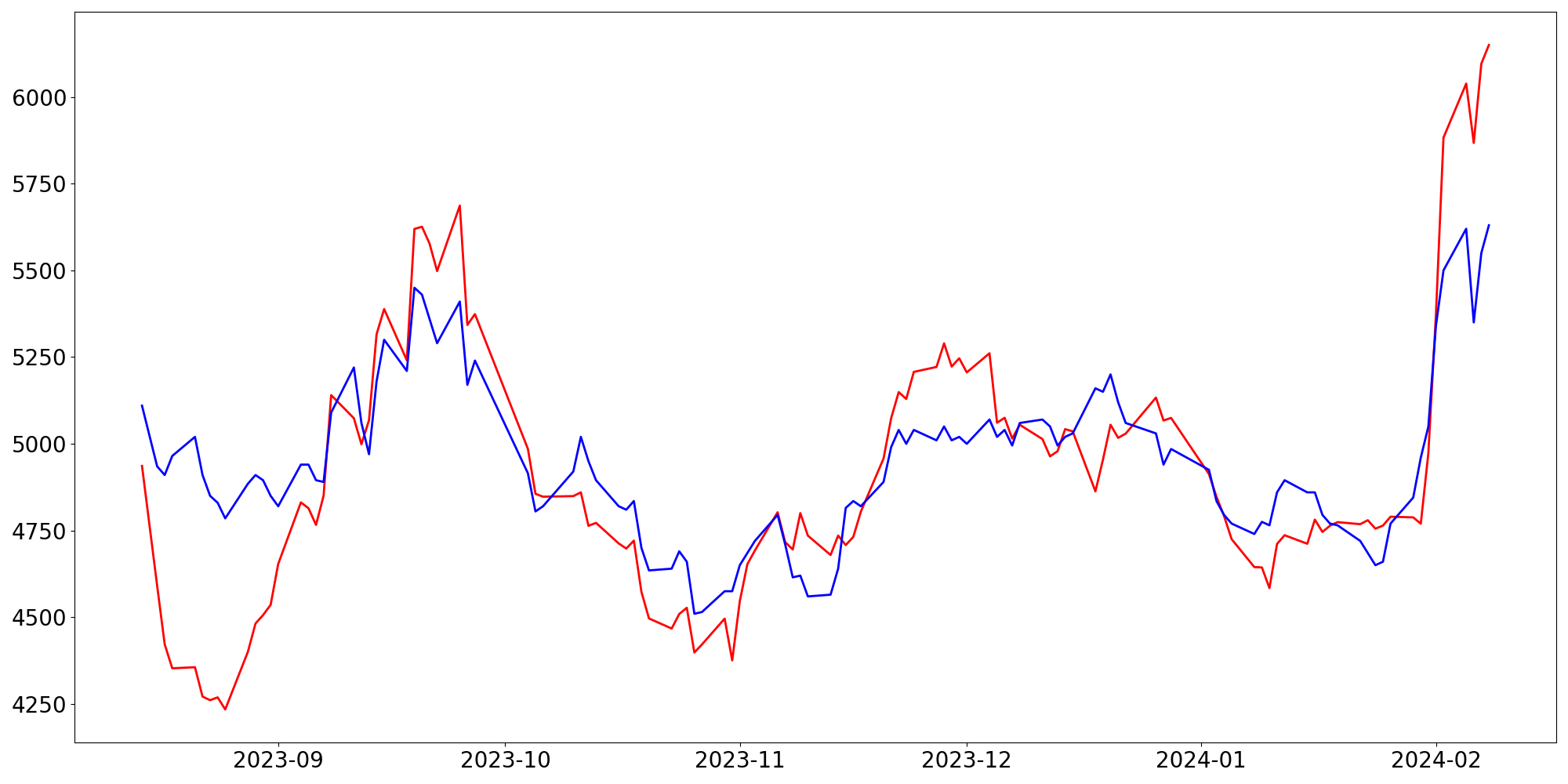 [ - : 실제값(종가) / - : 예측값(종가) ]