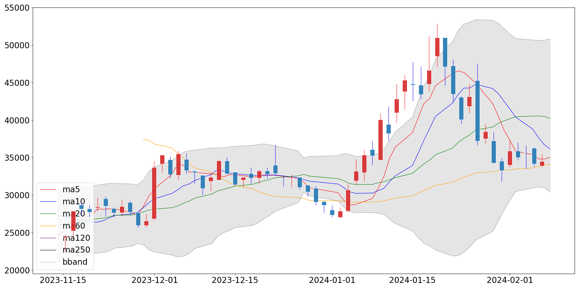 □ 장기 : 현재 종가가 장기(250일) 이동평균값(nan원)을 상회 하여 장기적 추세 상승 중