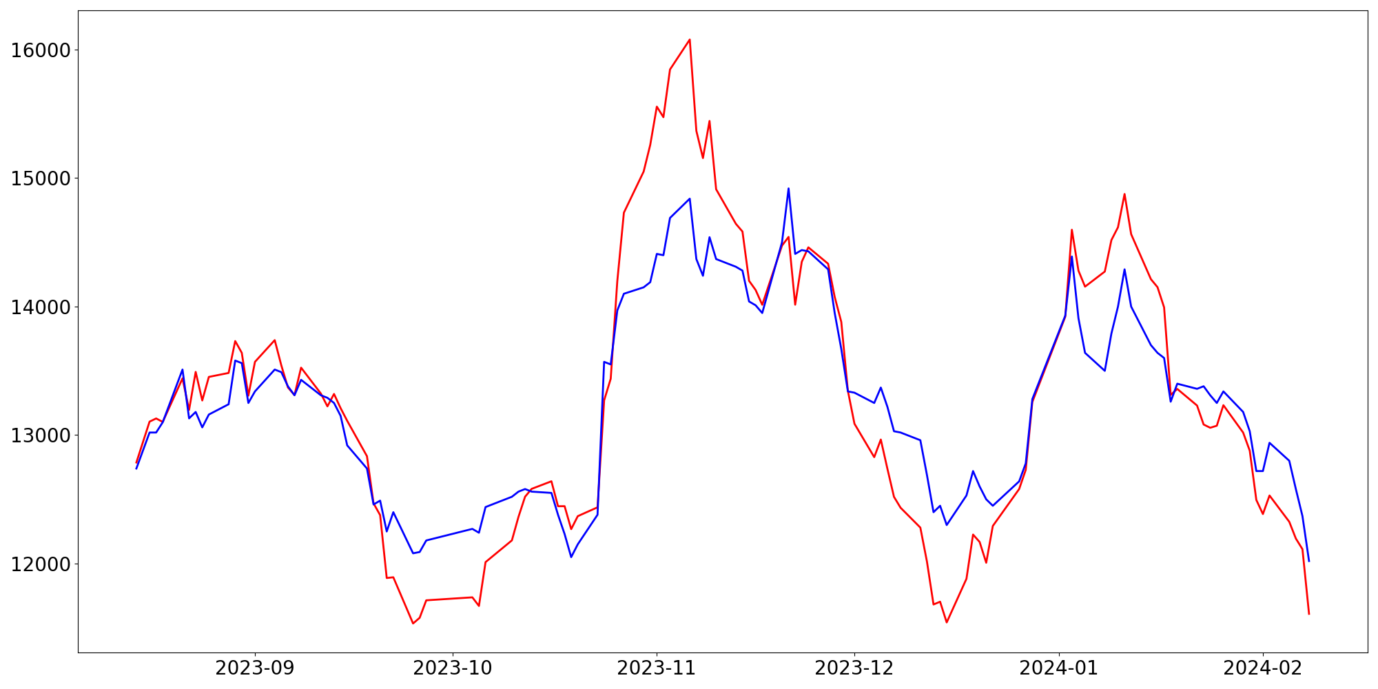 [ - : 실제값(종가) / - : 예측값(종가) ]