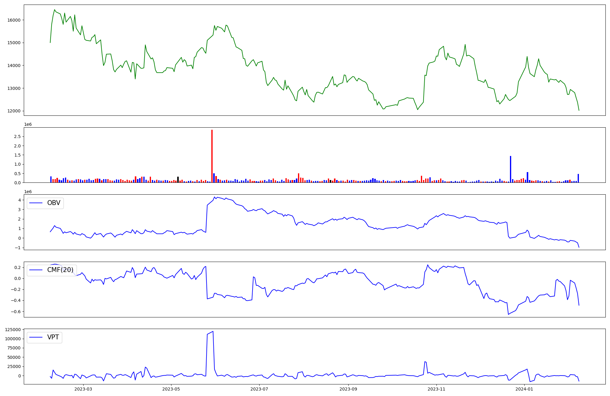 | OBV | CMF | VPT | |
