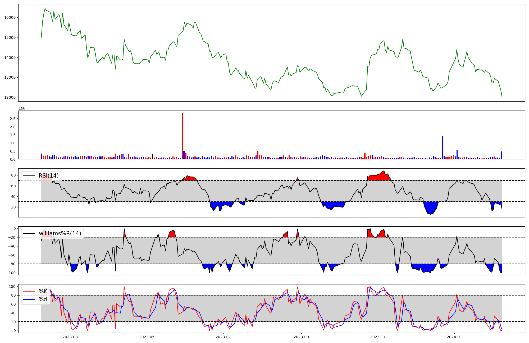 | RSI | Williams %R | stochastic(%K) | |