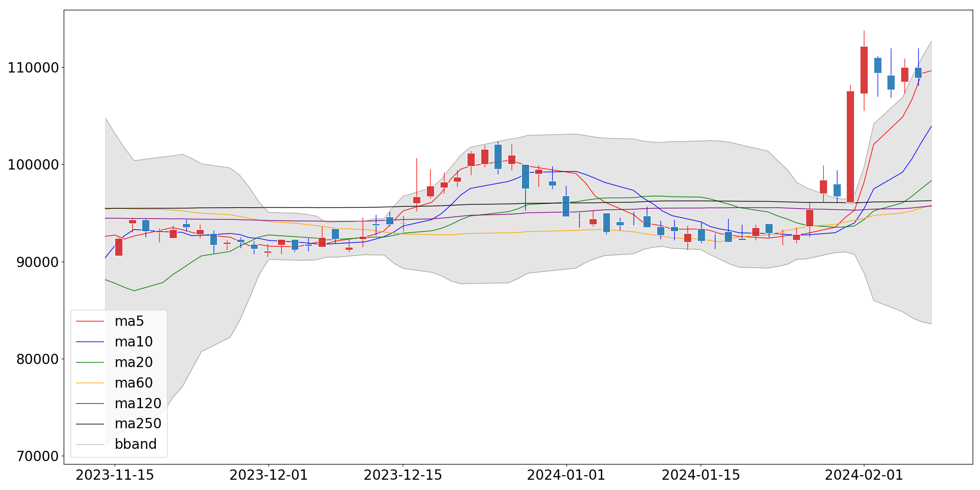 □ 중기 : 현재 종가가 중기(60일) 이동평균값(95,828원)을 상회 하여 중기적 추세 상승 중