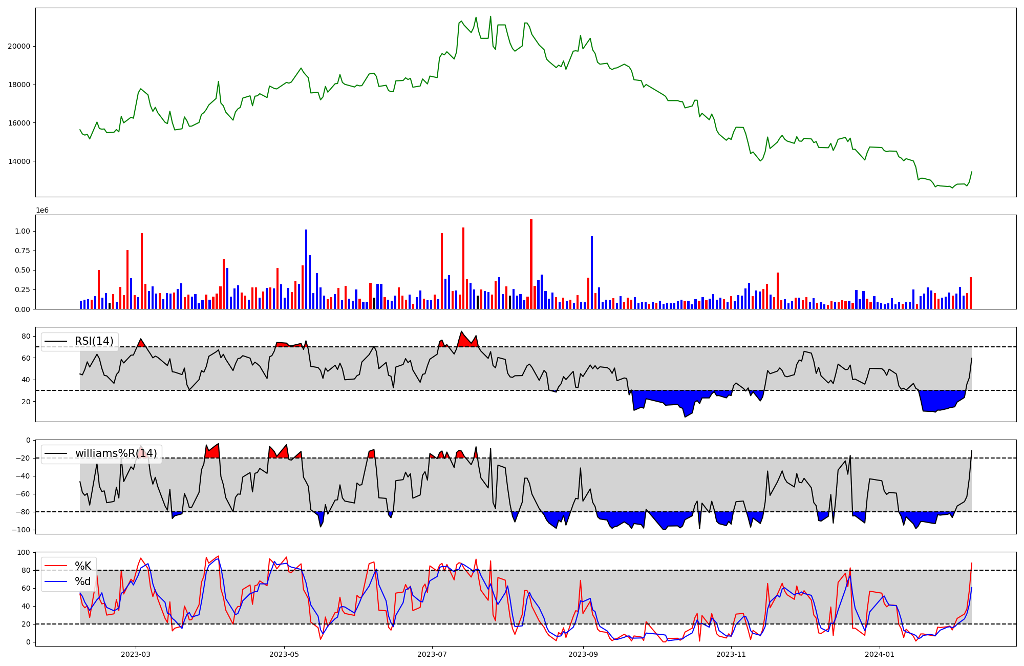 | RSI | Williams %R | stochastic(%K) | |