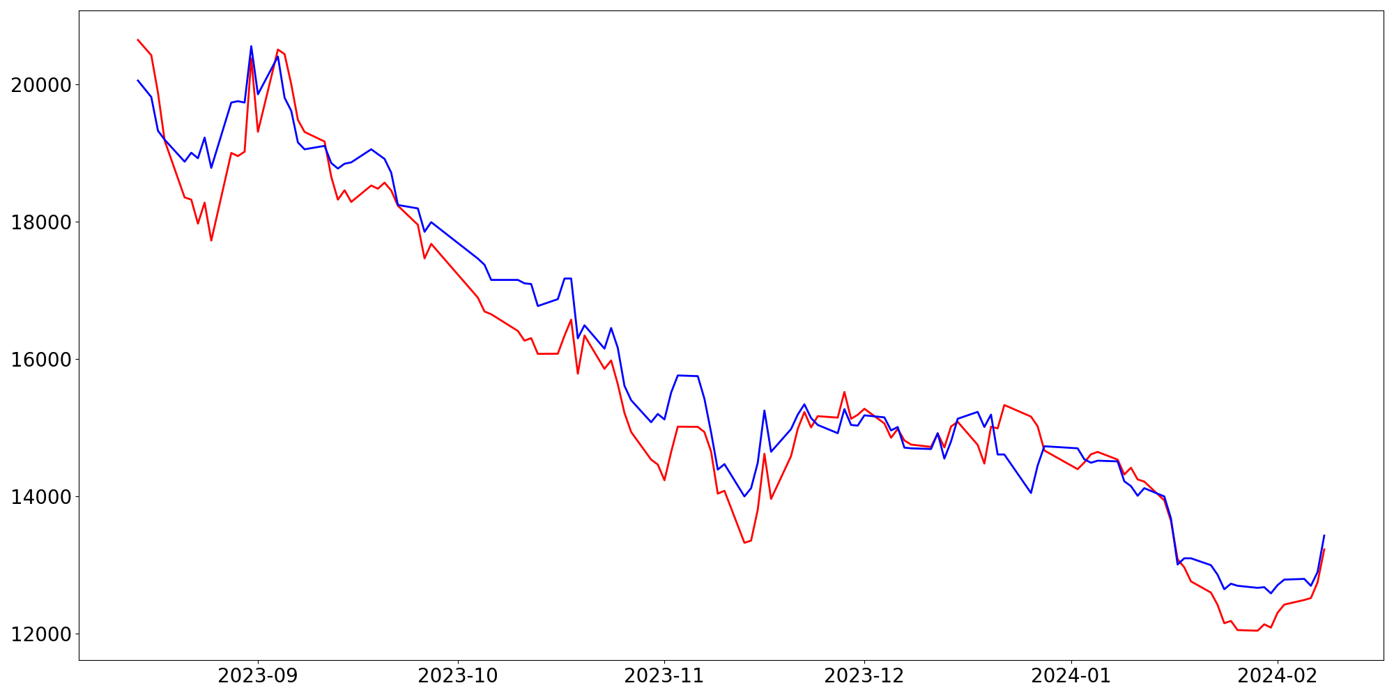 [ - : 실제값(종가) / - : 예측값(종가) ]