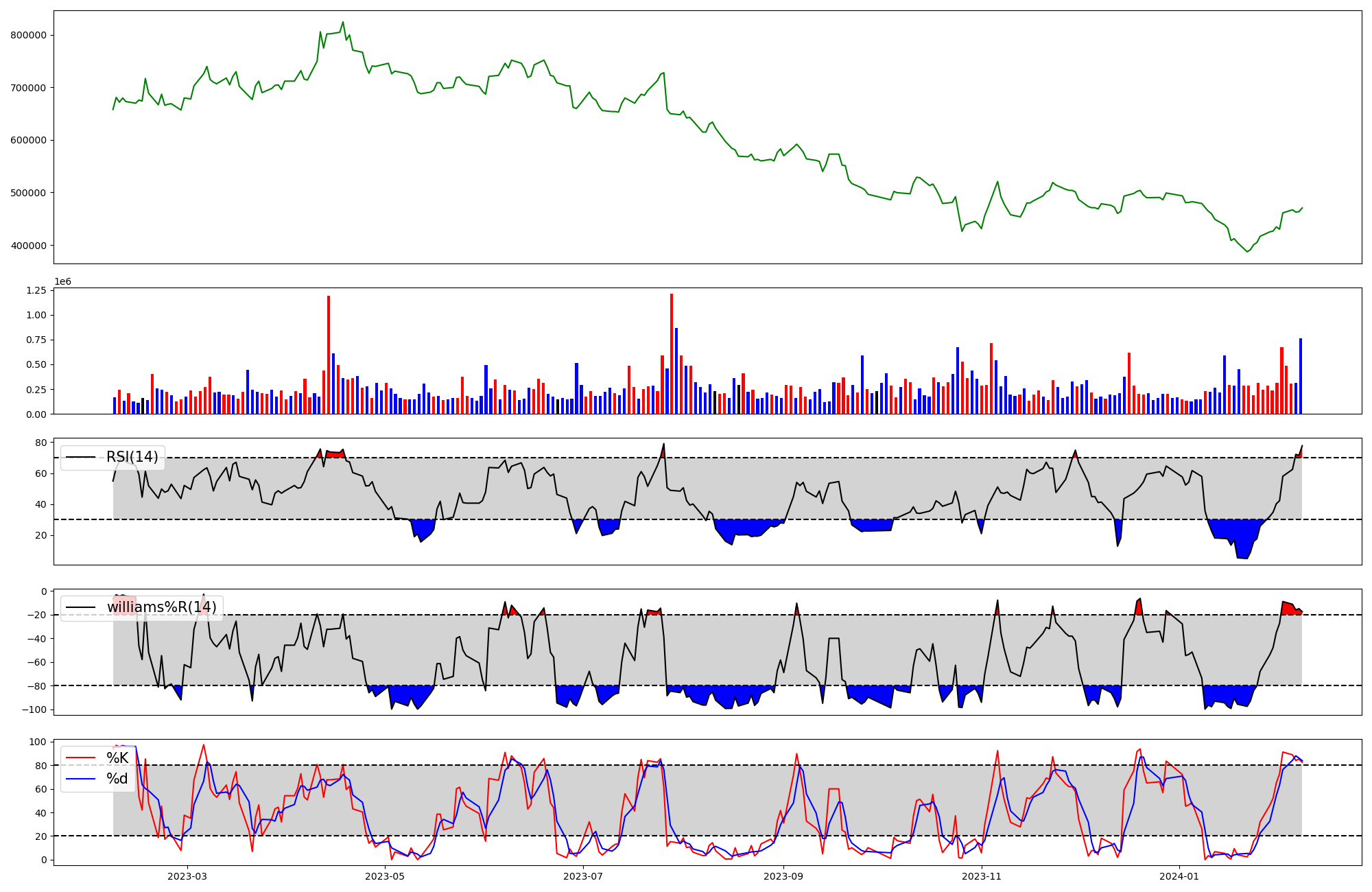 | RSI | Williams %R | stochastic(%K) | |