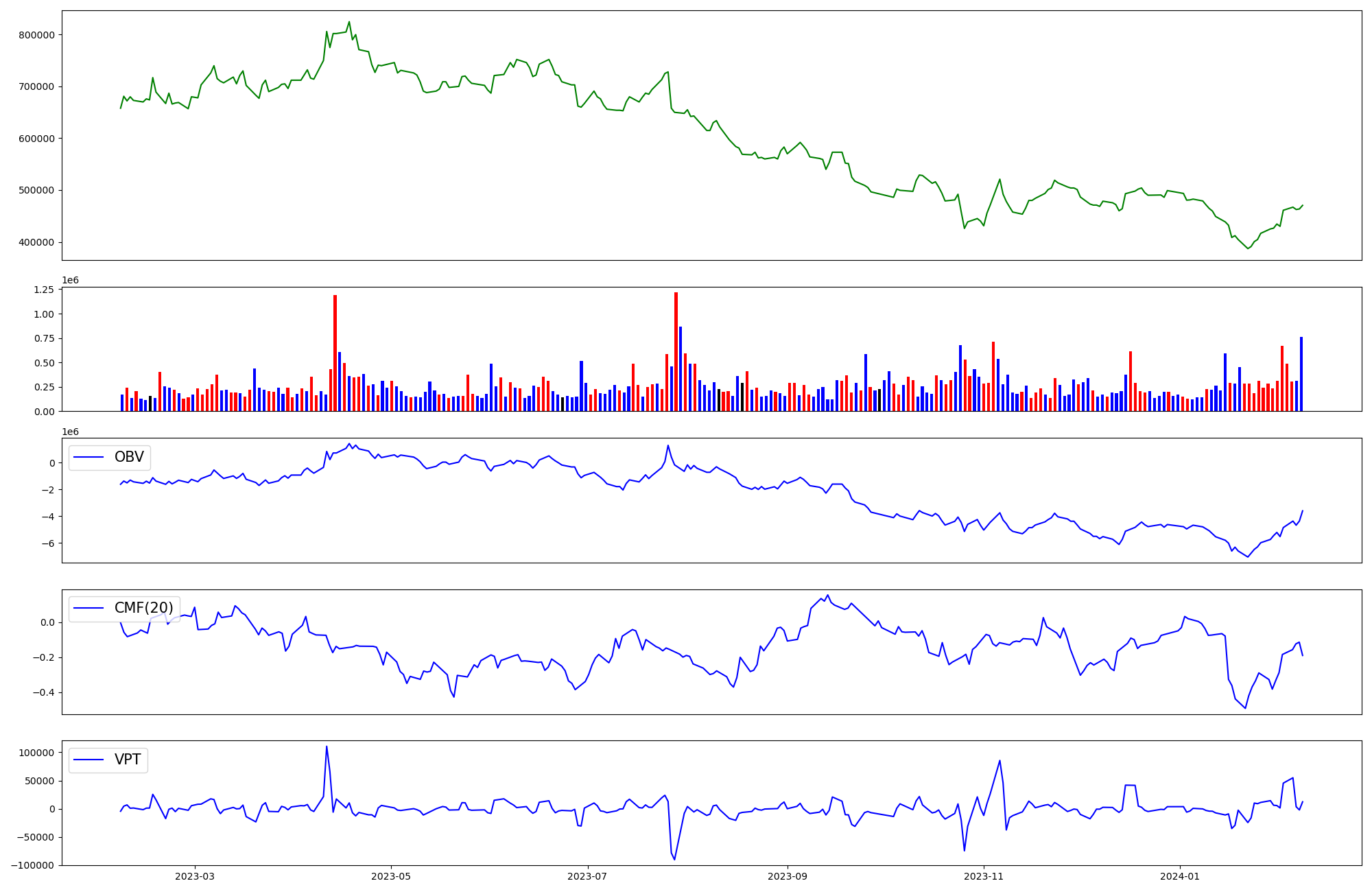 | OBV | CMF | VPT | |