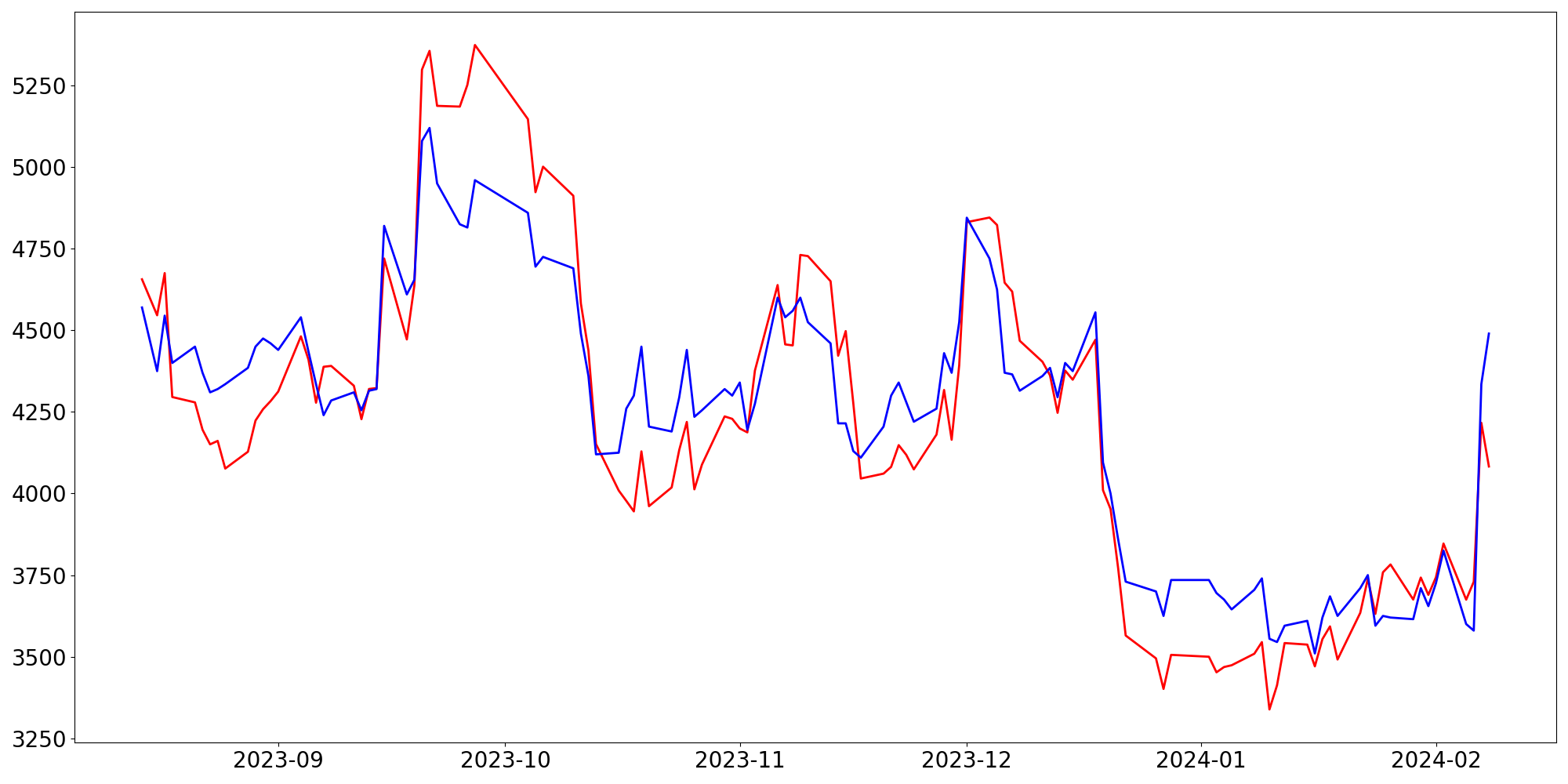 [ - : 실제값(종가) / - : 예측값(종가) ]