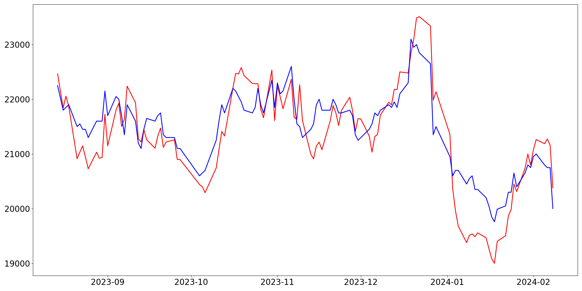 [ - : 실제값(종가) / - : 예측값(종가) ]
