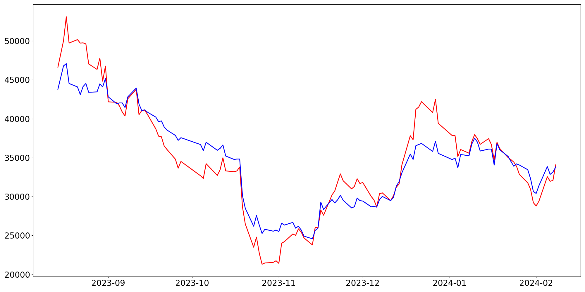 [ - : 실제값(종가) / - : 예측값(종가) ]