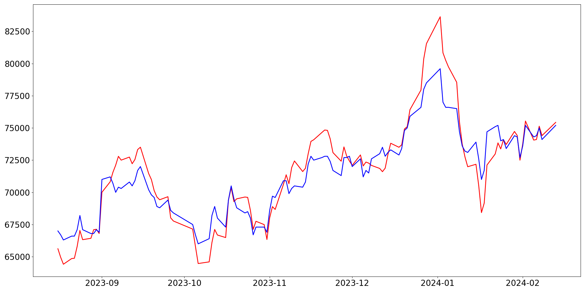 [ - : 실제값(종가) / - : 예측값(종가) ]