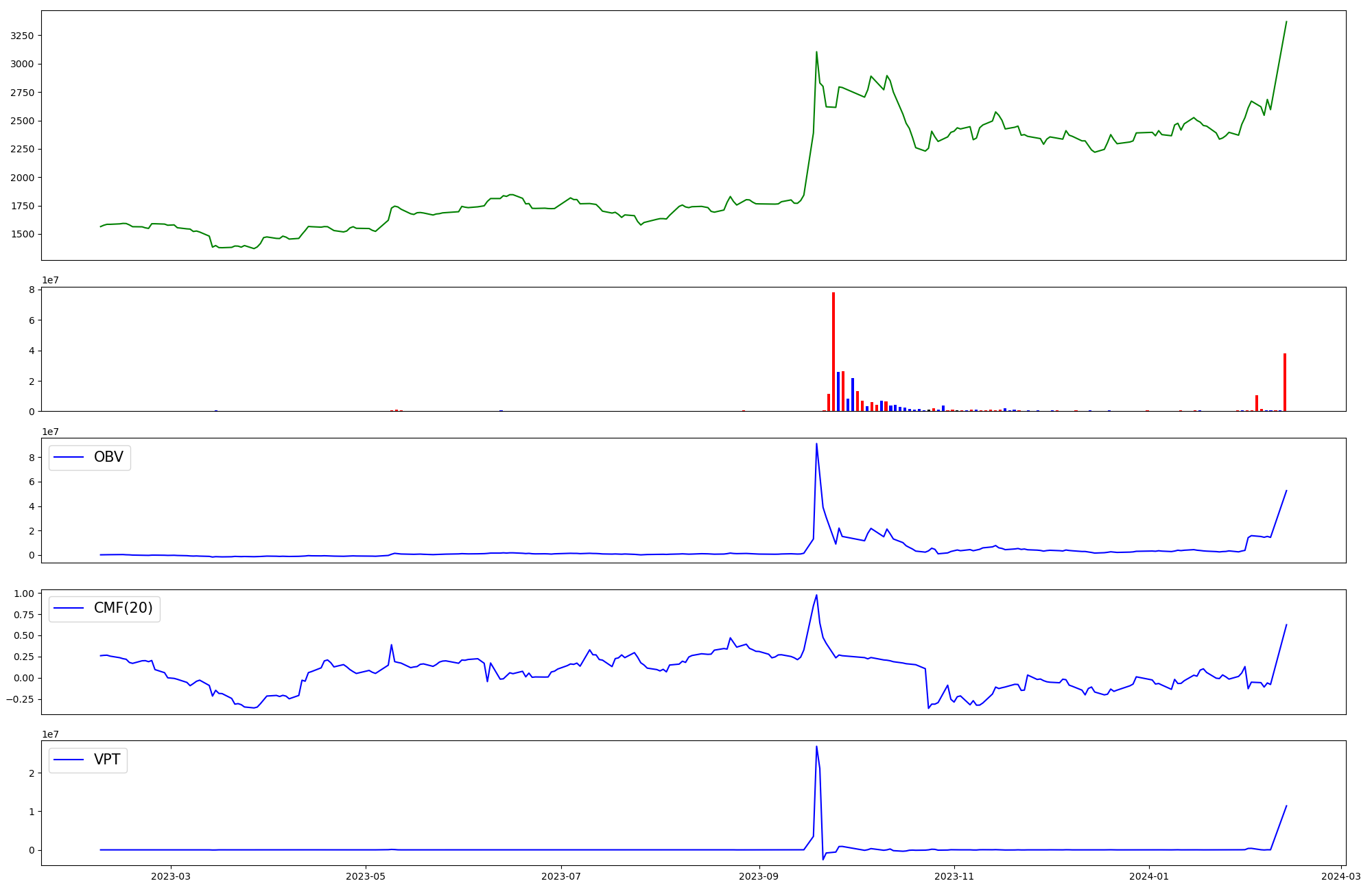 | OBV | CMF | VPT | |