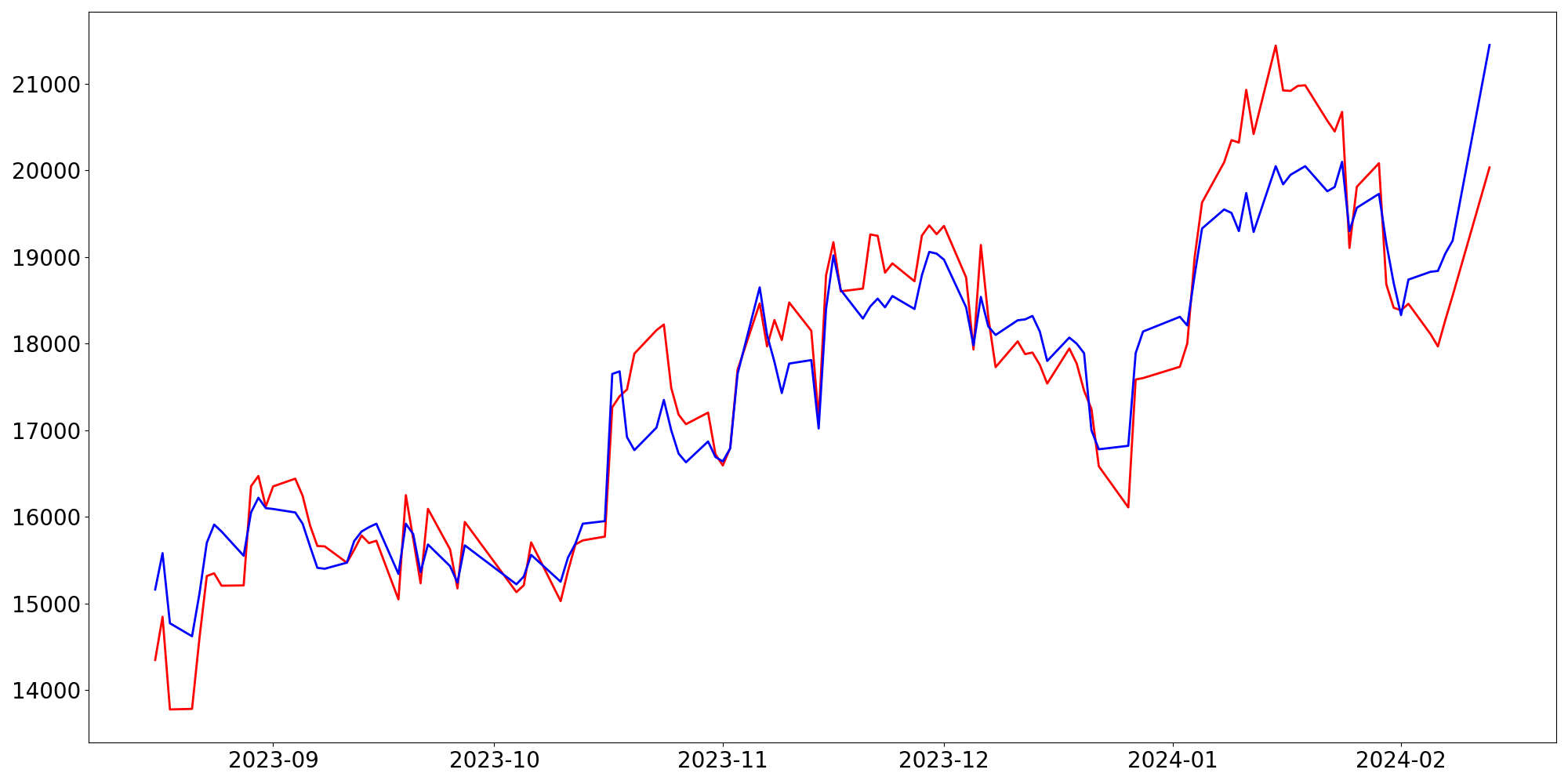 [ - : 실제값(종가) / - : 예측값(종가) ]