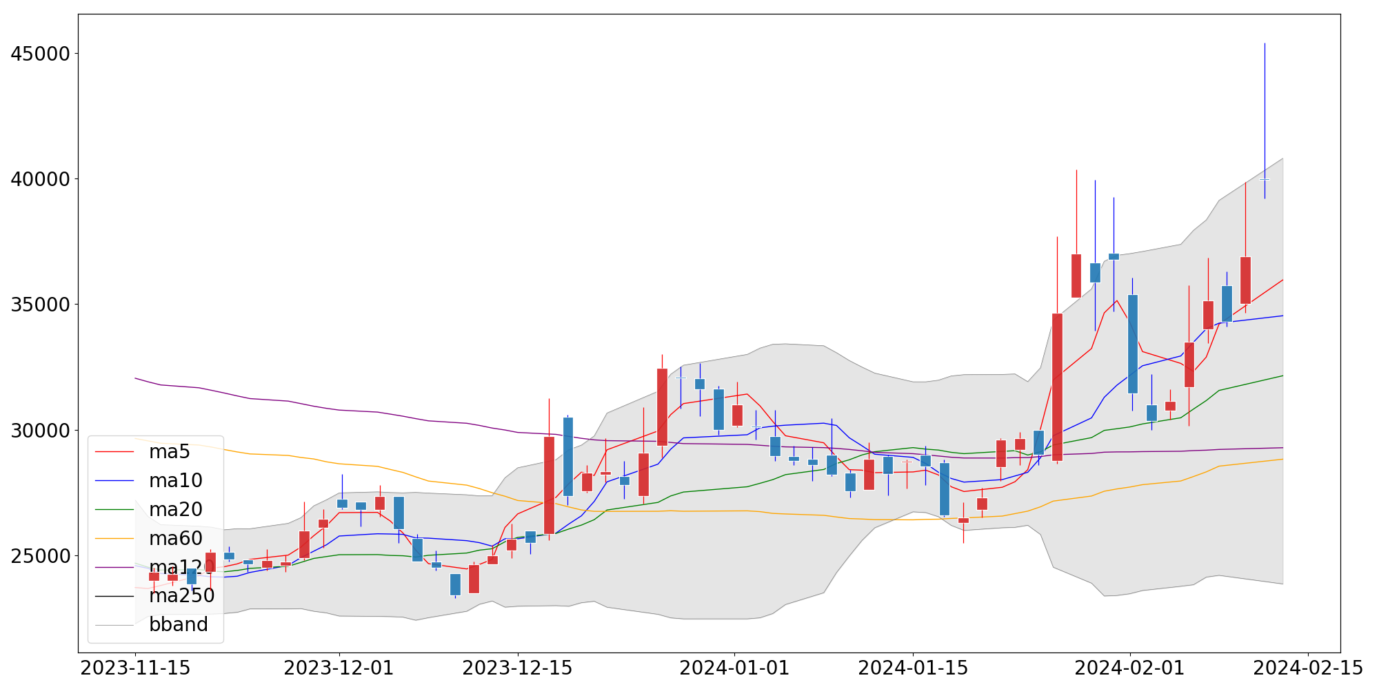 □ 장기 : 현재 종가가 장기(250일) 이동평균값(nan원)을 상회 하여 장기적 추세 상승 중