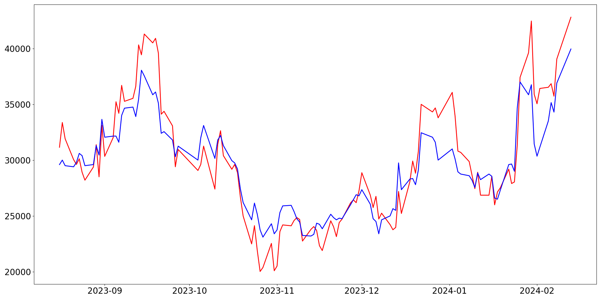 [ - : 실제값(종가) / - : 예측값(종가) ]
