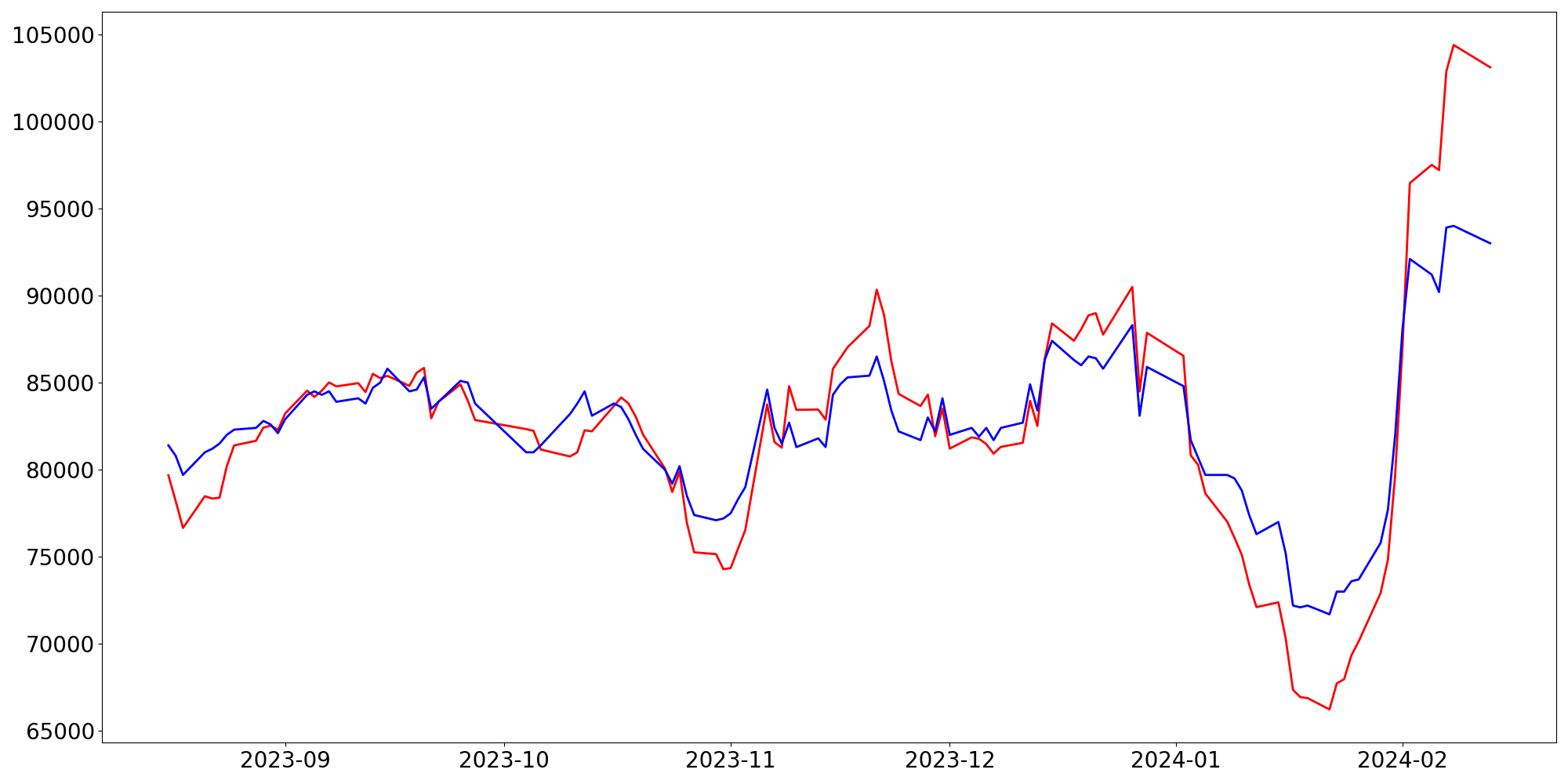 [ - : 실제값(종가) / - : 예측값(종가) ]