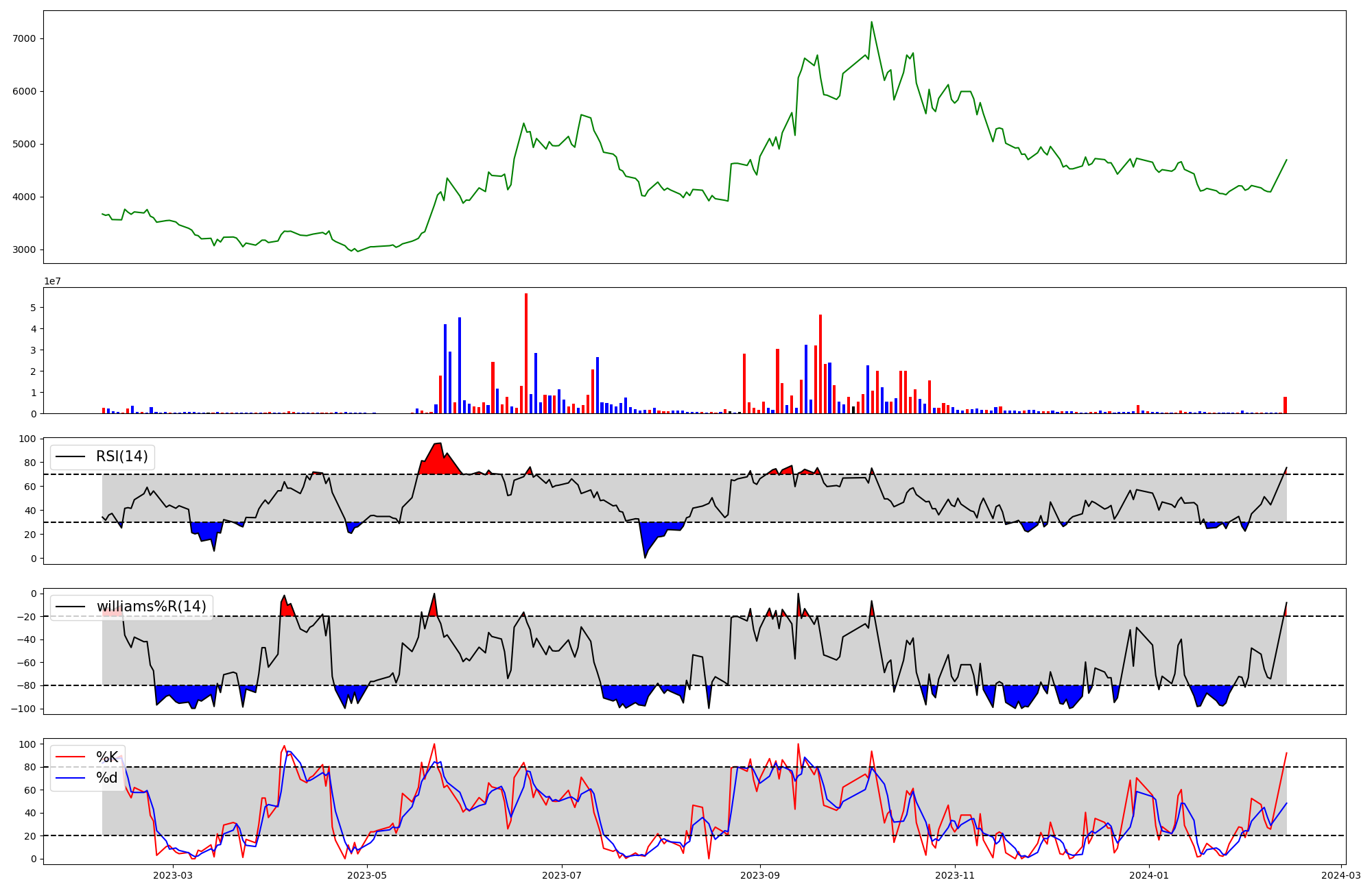 | RSI | Williams %R | stochastic(%K) | |