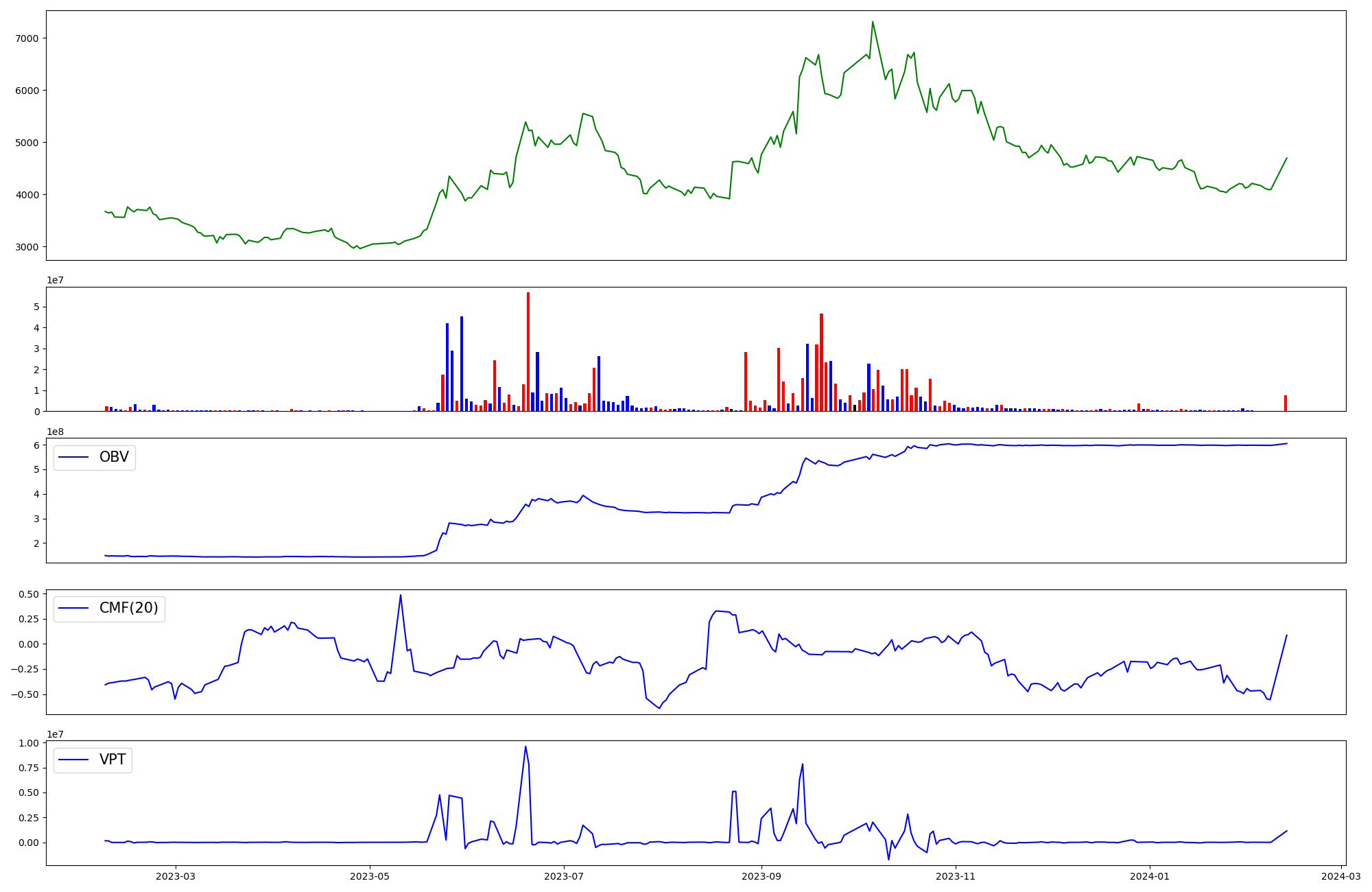 | OBV | CMF | VPT | |