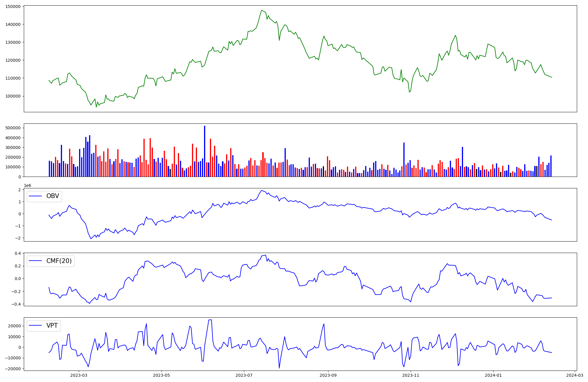 | OBV | CMF | VPT | |