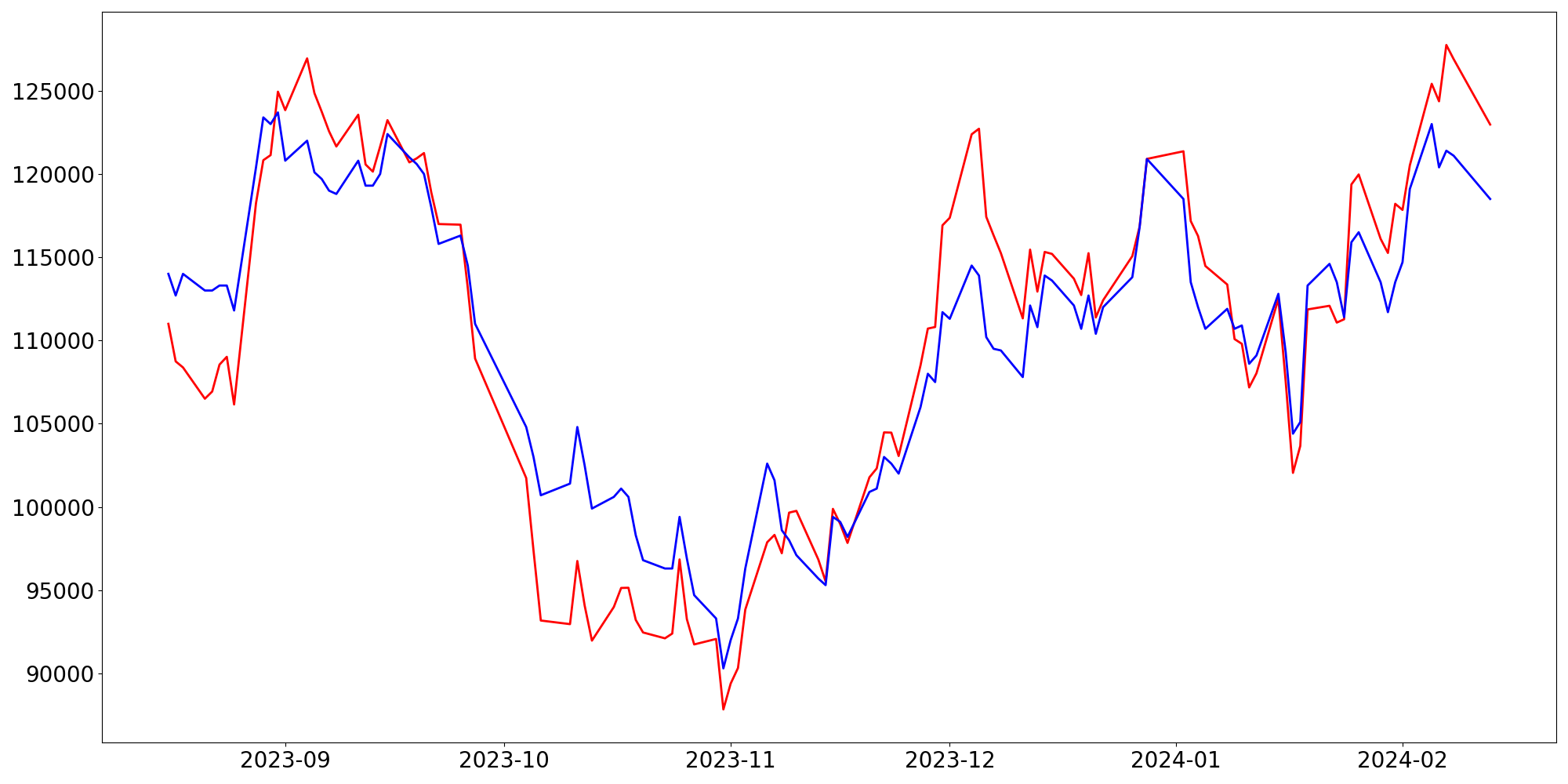[ - : 실제값(종가) / - : 예측값(종가) ]