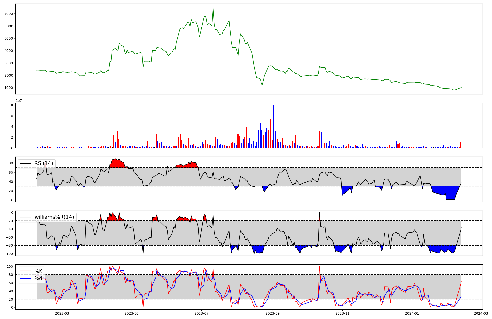 | RSI | Williams %R | stochastic(%K) | |