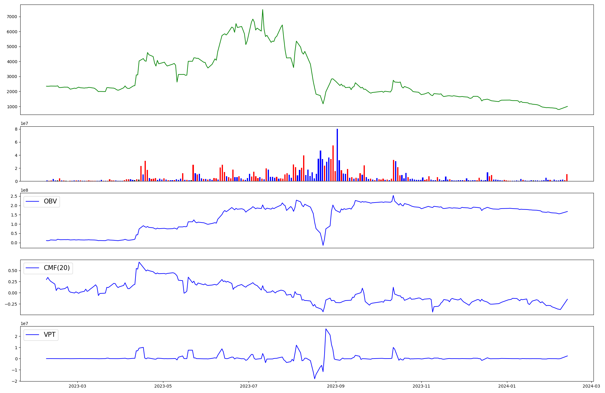| OBV | CMF | VPT | |