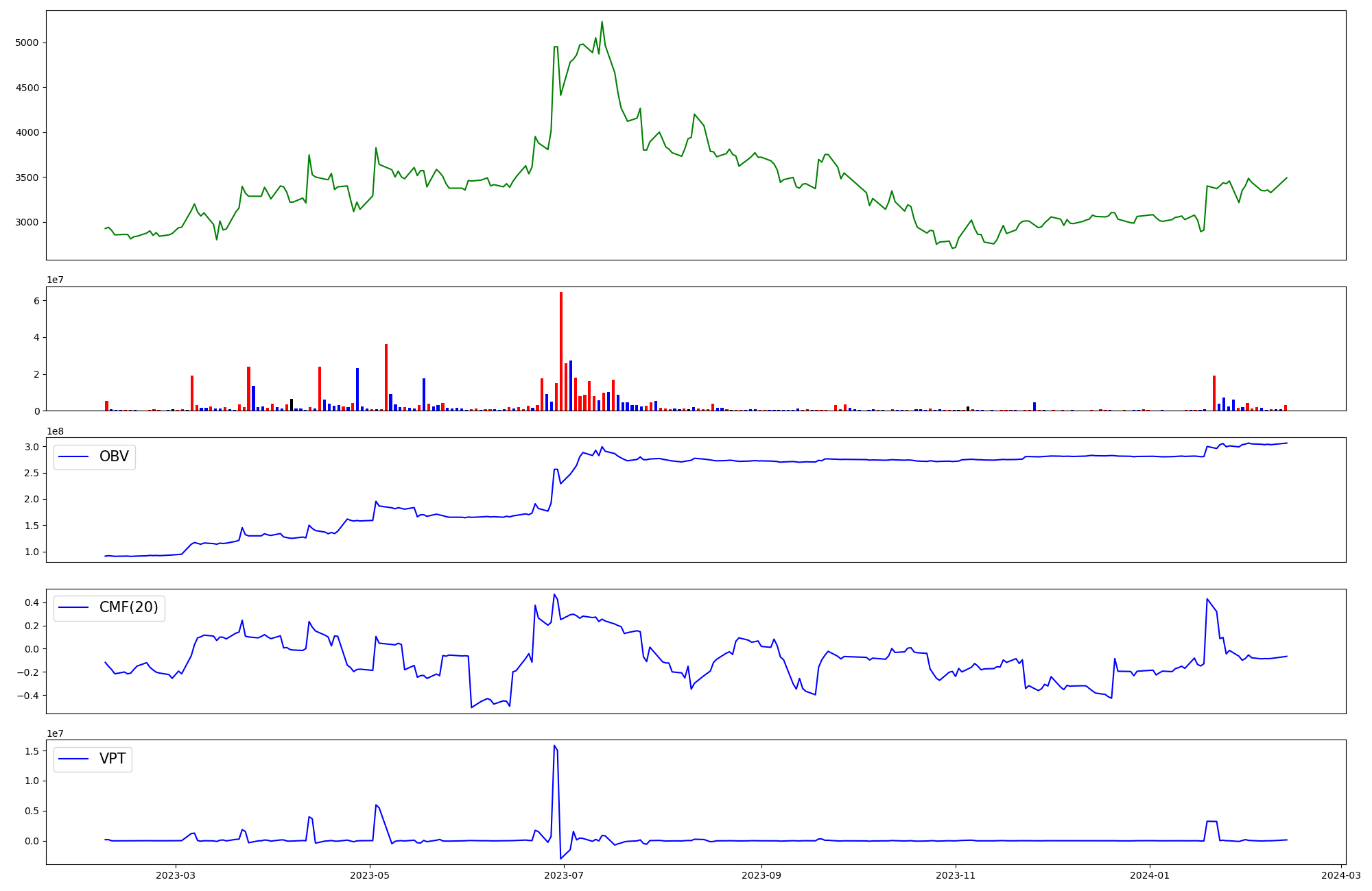 | OBV | CMF | VPT | |