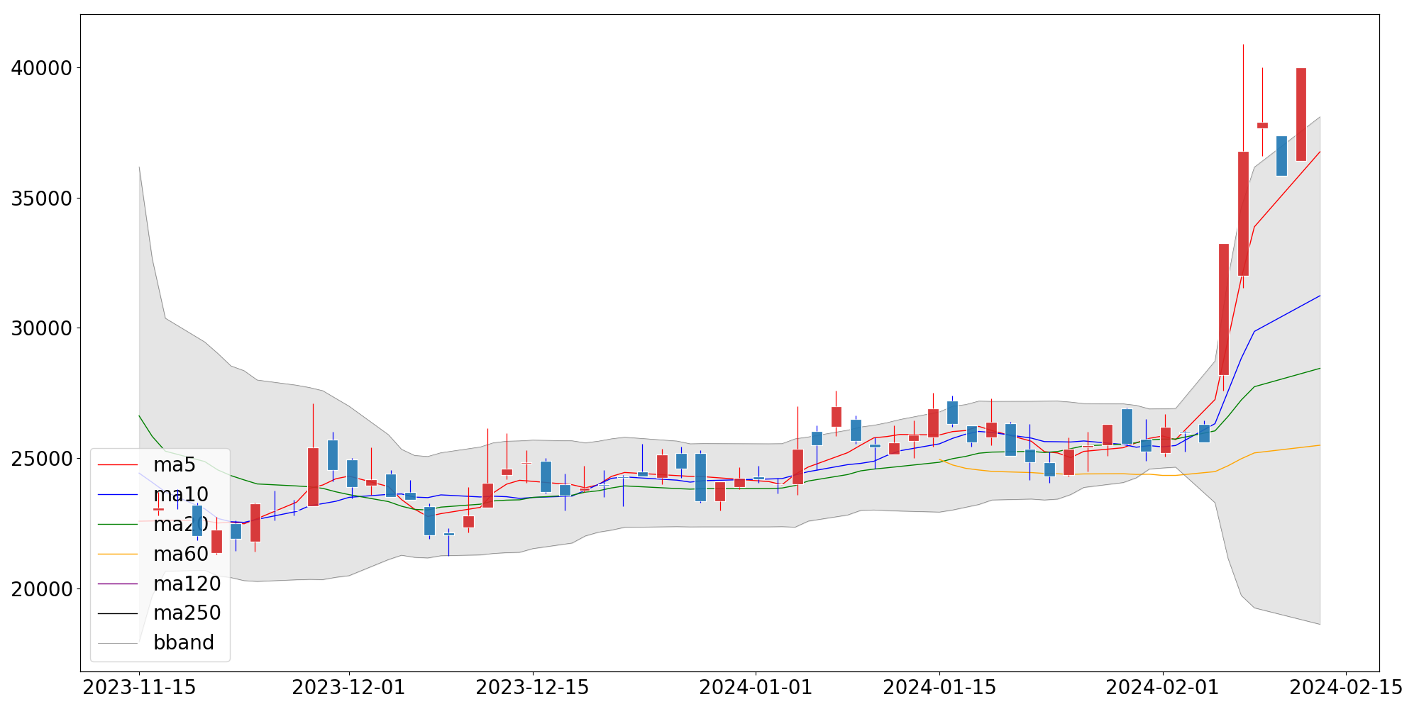 □ 오늘의 종가 : 40,000 (+4,150, +11.58%)