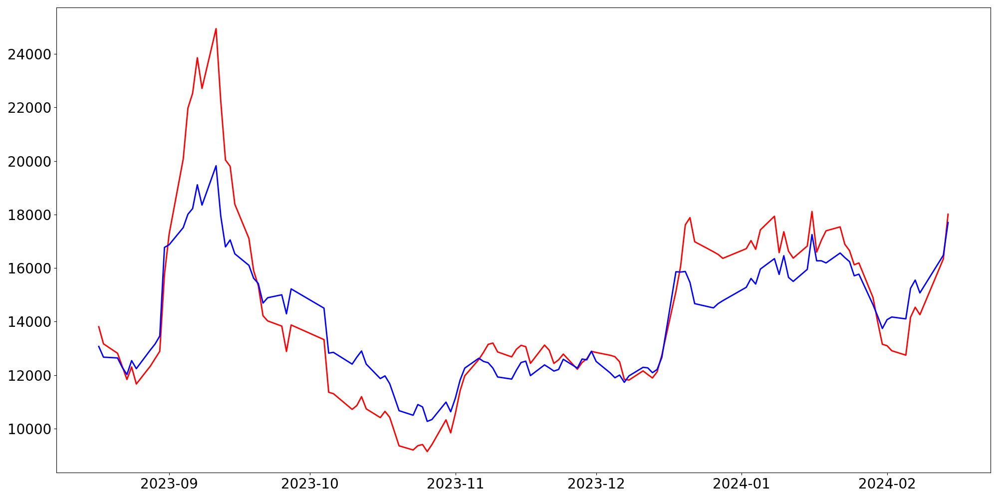 [ - : 실제값(종가) / - : 예측값(종가) ]