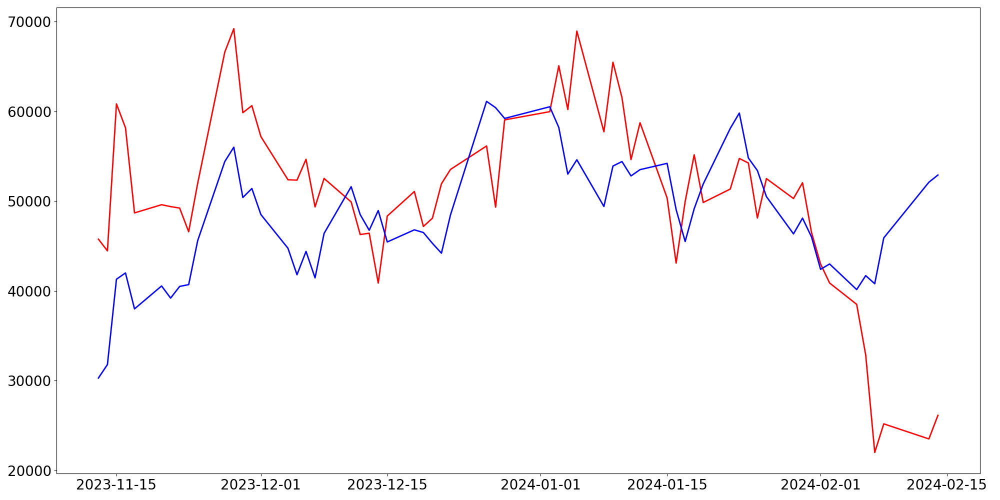 [ - : 실제값(종가) / - : 예측값(종가) ]