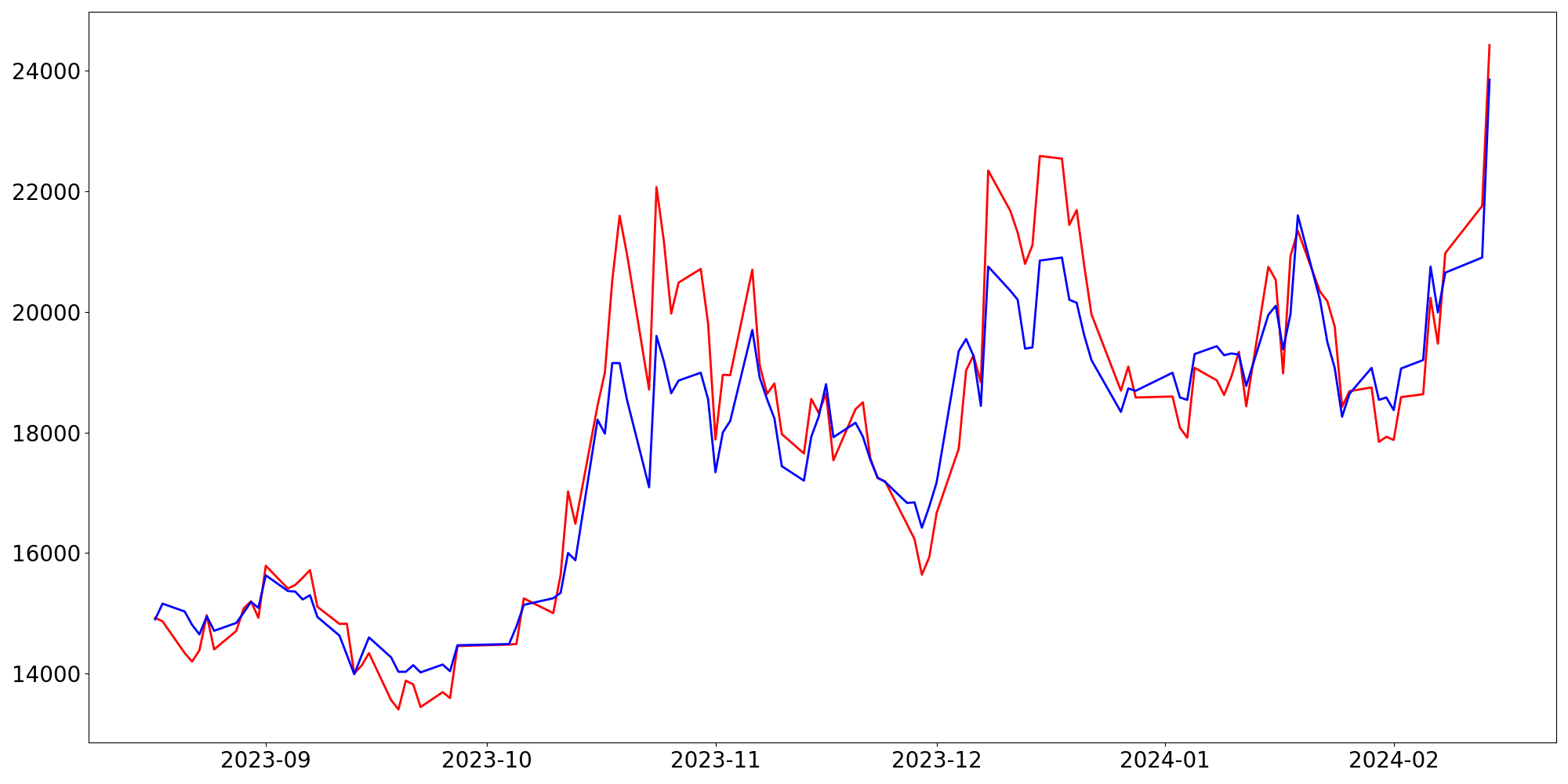[ - : 실제값(종가) / - : 예측값(종가) ]