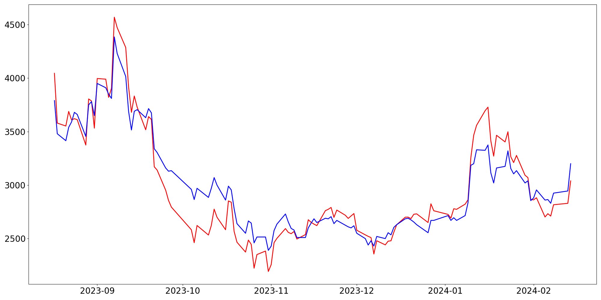[ - : 실제값(종가) / - : 예측값(종가) ]