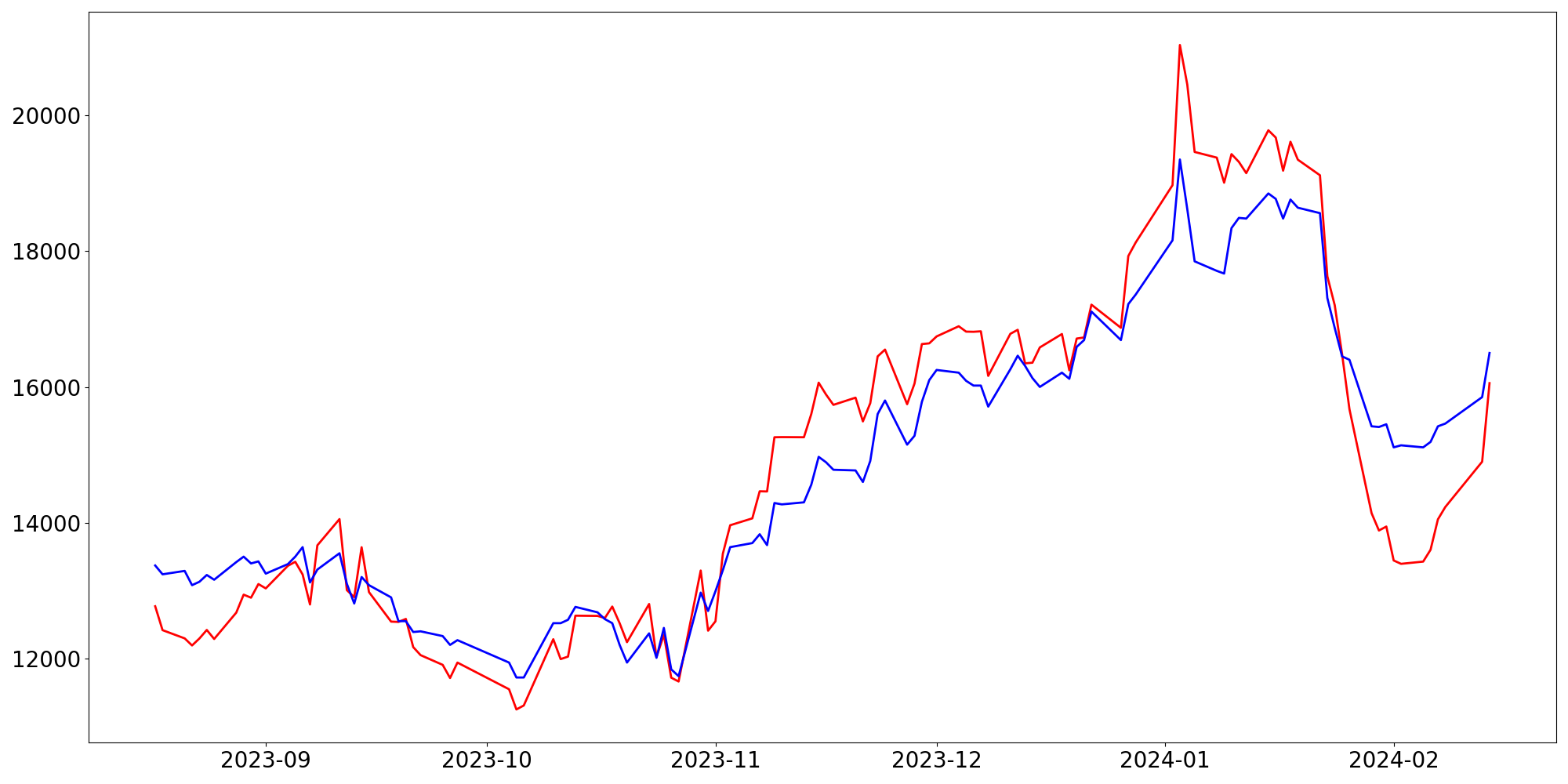 [ - : 실제값(종가) / - : 예측값(종가) ]