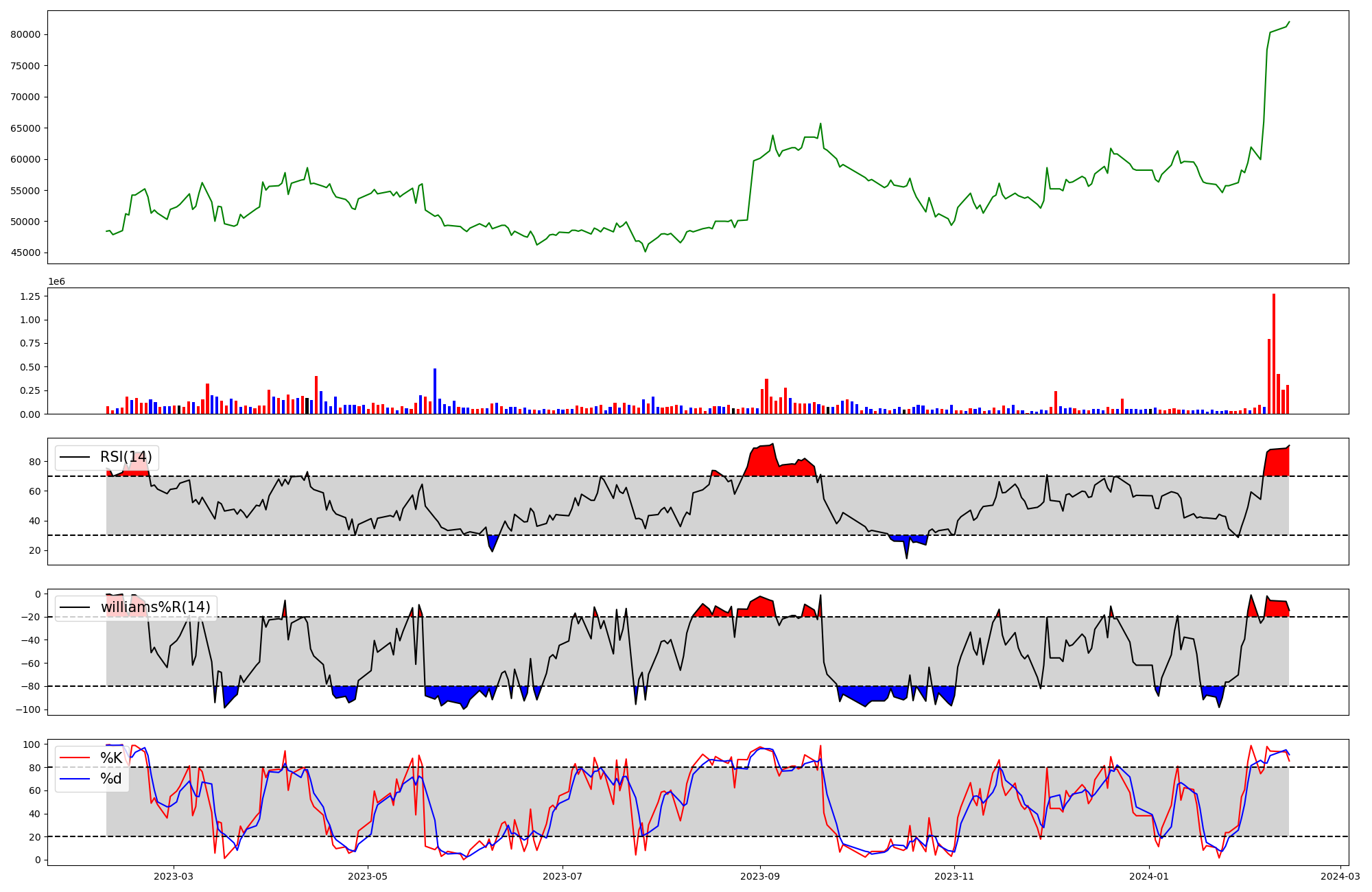 | RSI | Williams %R | stochastic(%K) | |