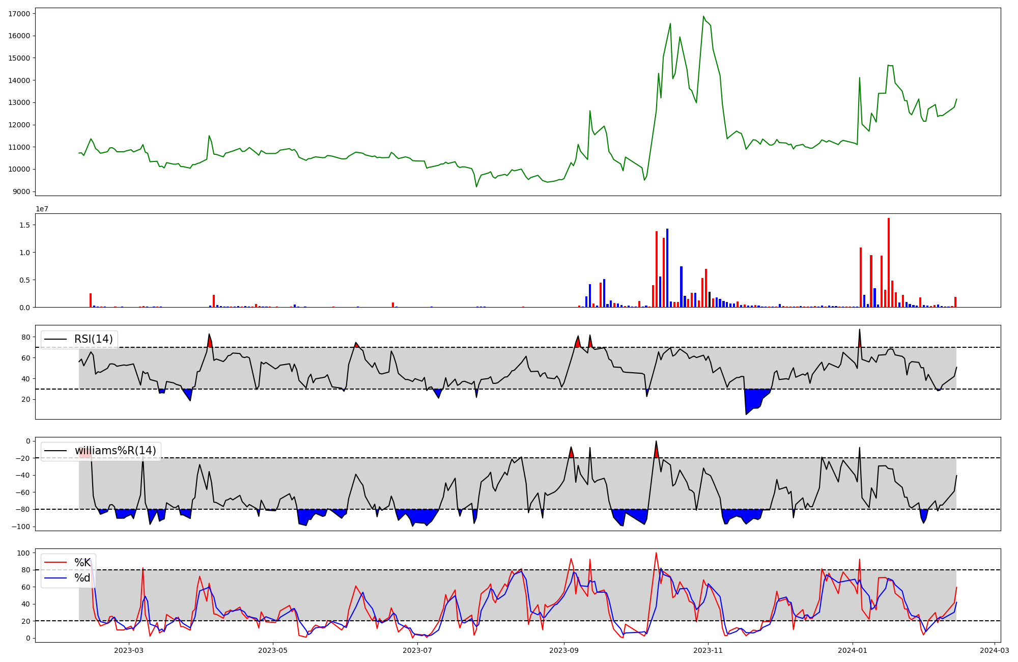 RSI | Williams %R | stochastic(%K) | |