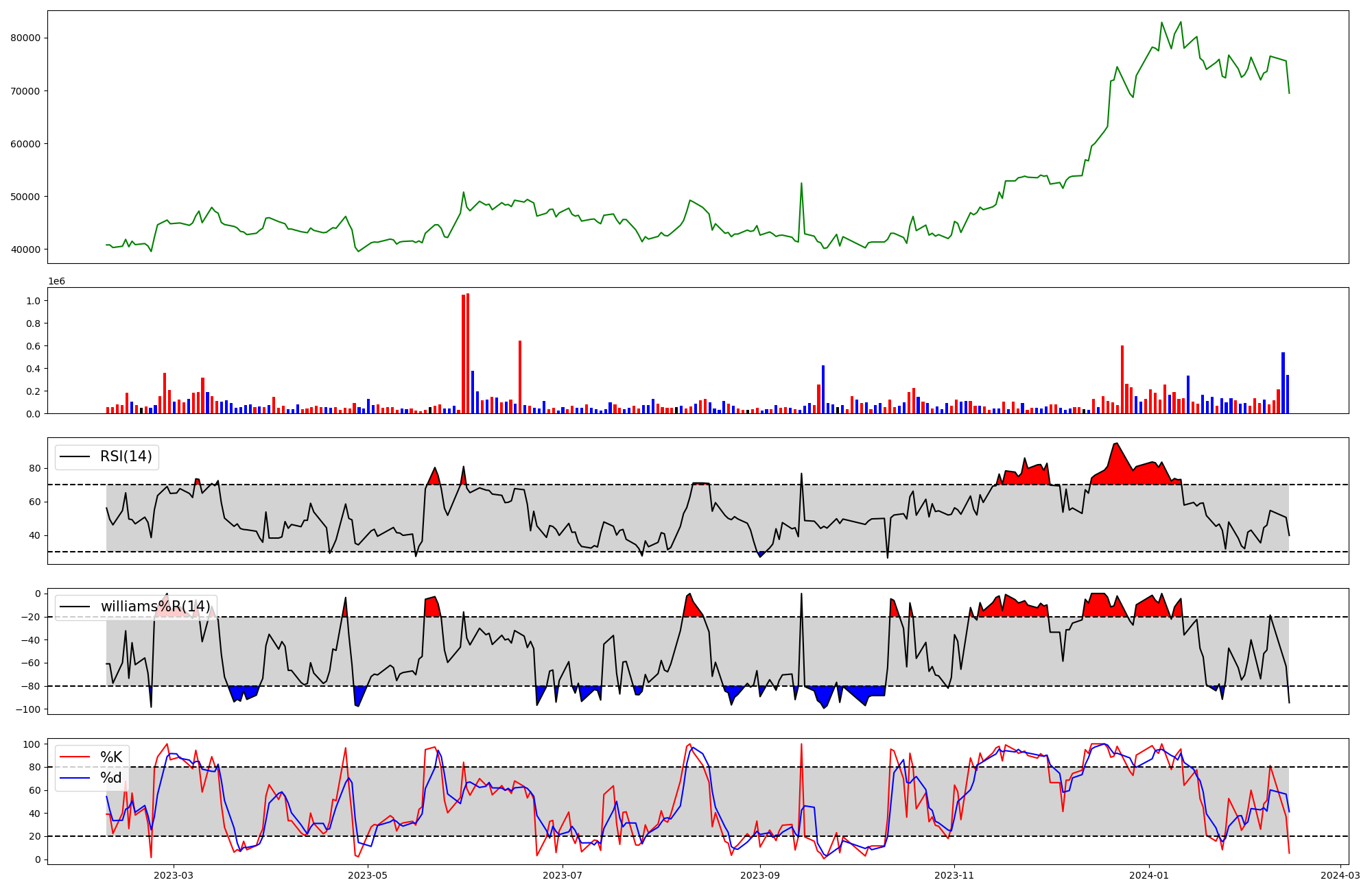RSI | Williams %R | stochastic(%K) | |