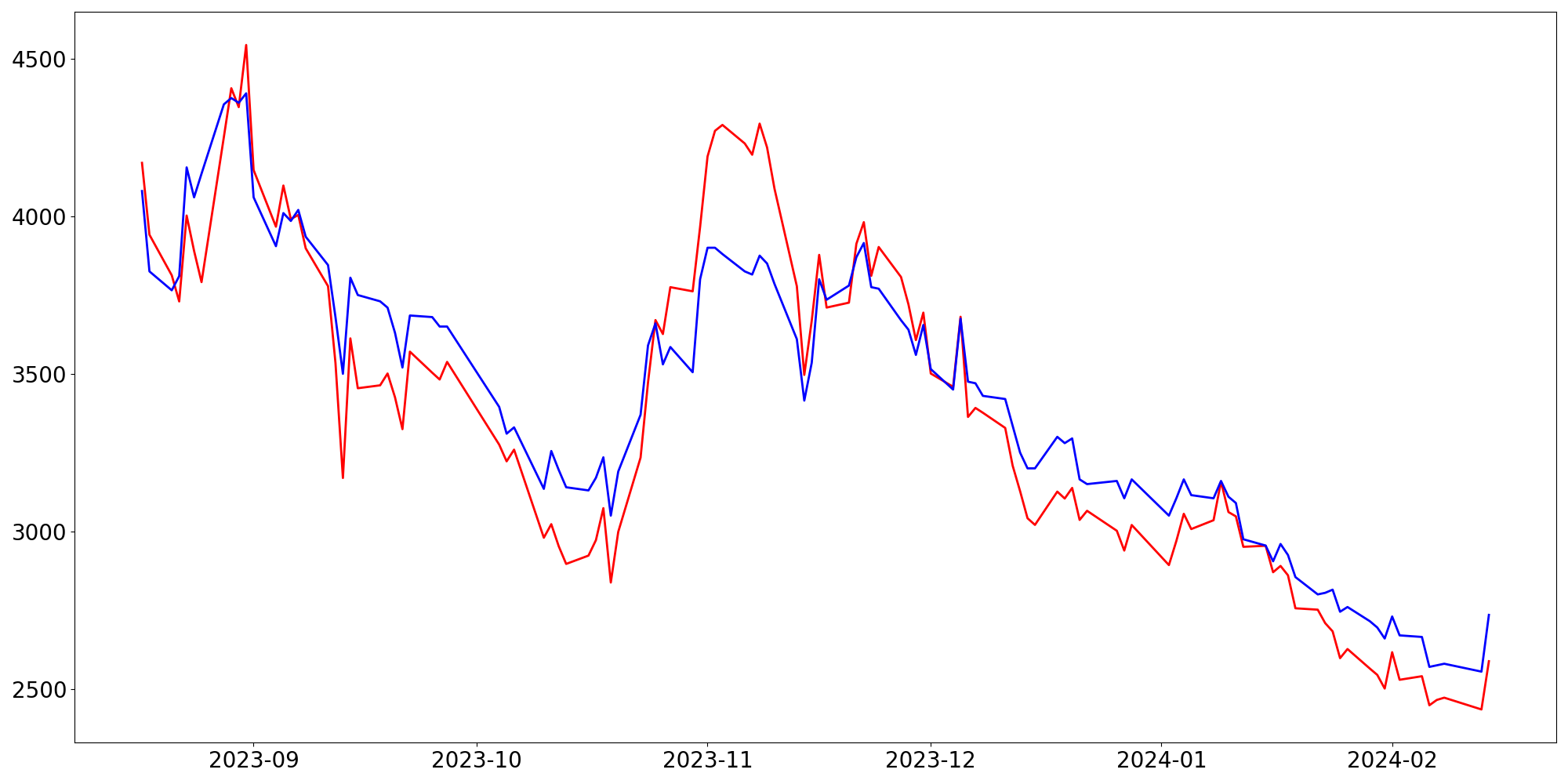 [ - : 실제값(종가) / - : 예측값(종가) ]