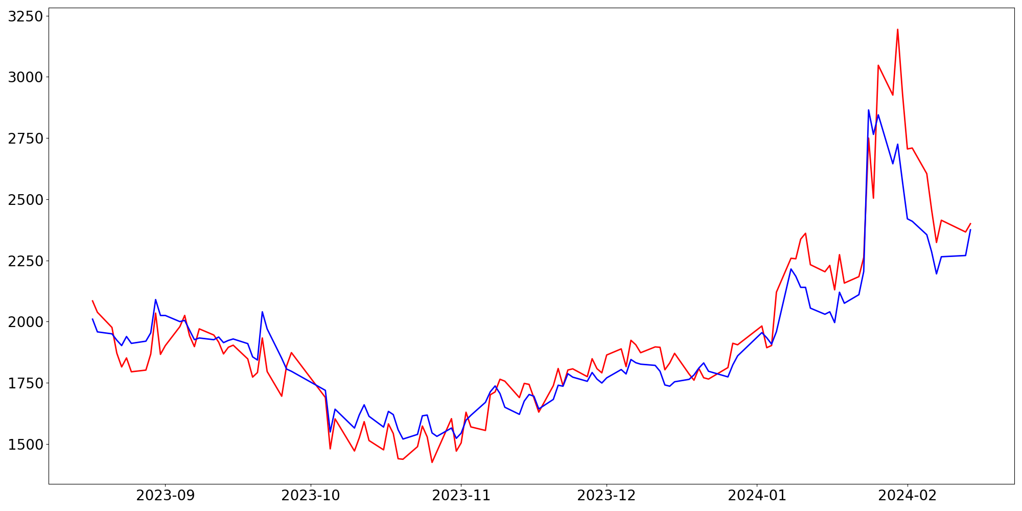 [ - : 실제값(종가) / - : 예측값(종가) ]