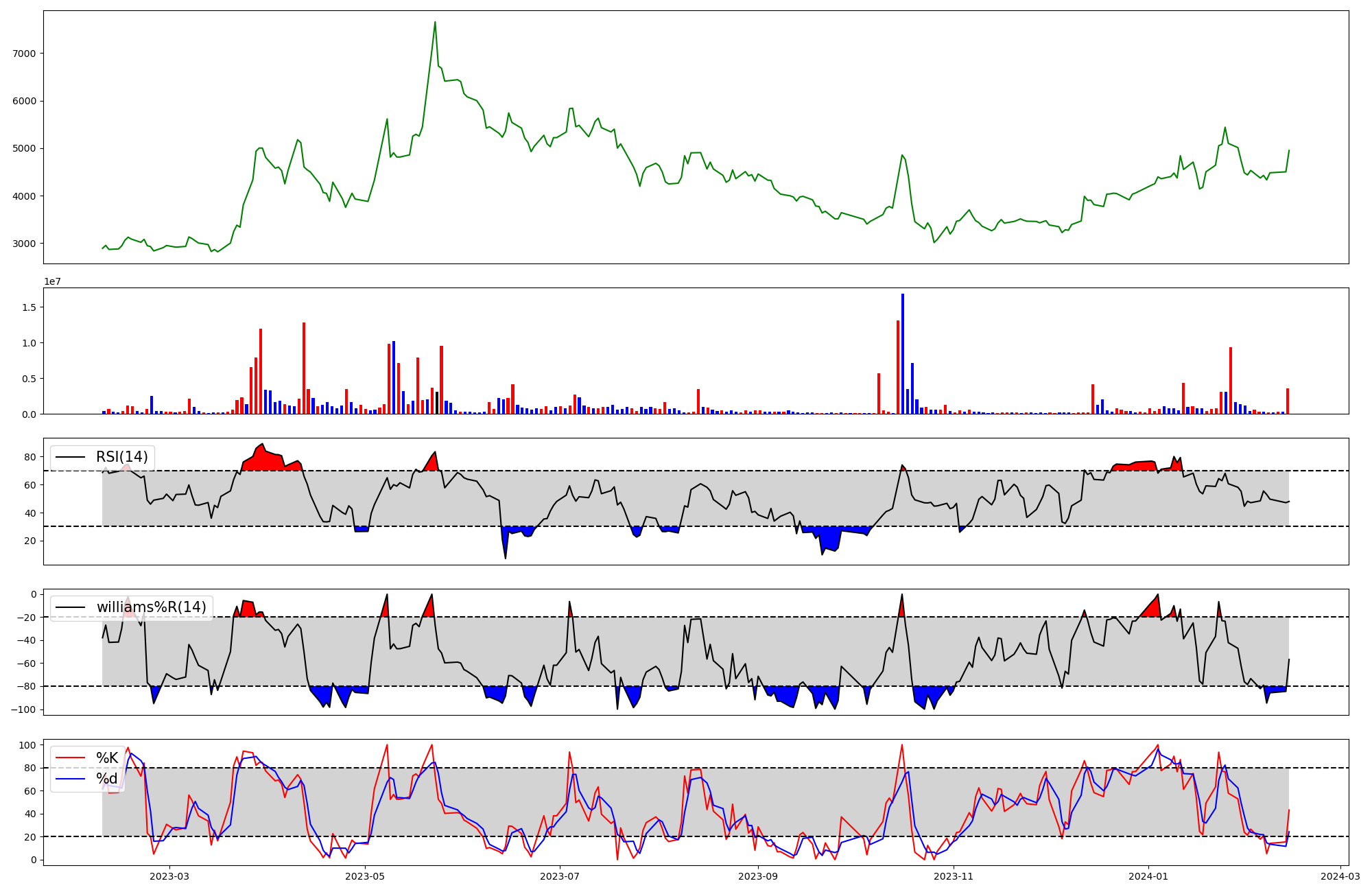RSI | Williams %R | stochastic(%K) | |